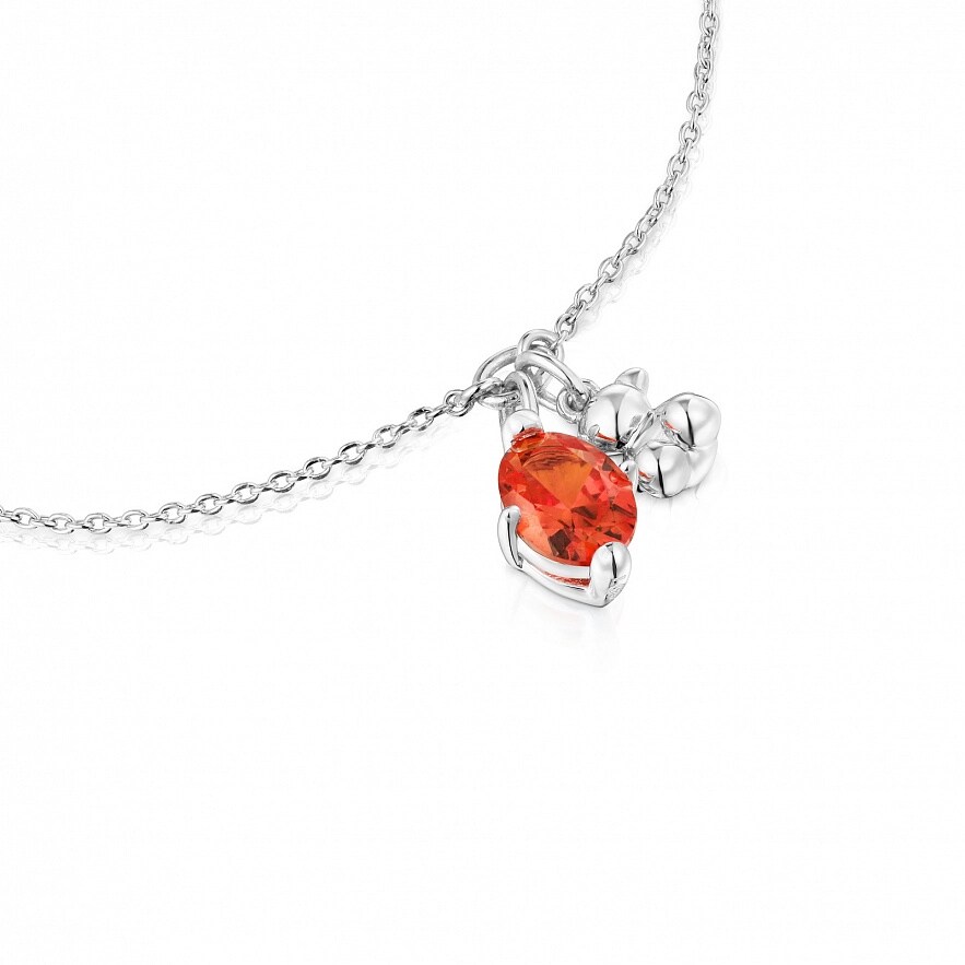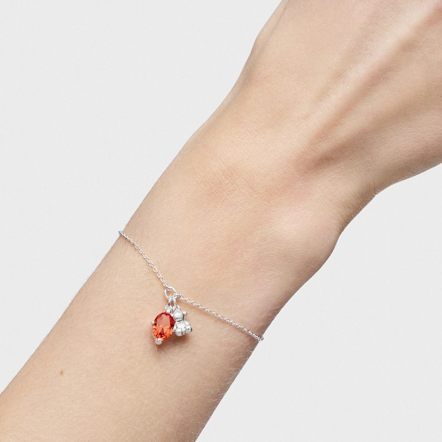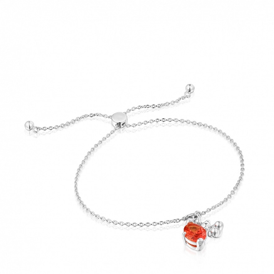 Браслет TOUS Bold Bear LGG з мотивом ведмедика зі срібла 925 проби з огранованим синтетичним помаранчевим сапфіром овального огранювання, вирощеним у лабораторії. Розмір дорогоцінного каменю: 8 мм. Розмір ведмедика: 7 мм. Загальна довжина браслета: 23 см. Застібка-слайдер. Примітка: Виріб створено з використанням лабораторно вирощених дорогоцінних каменів.