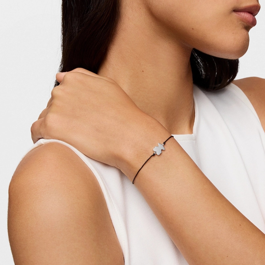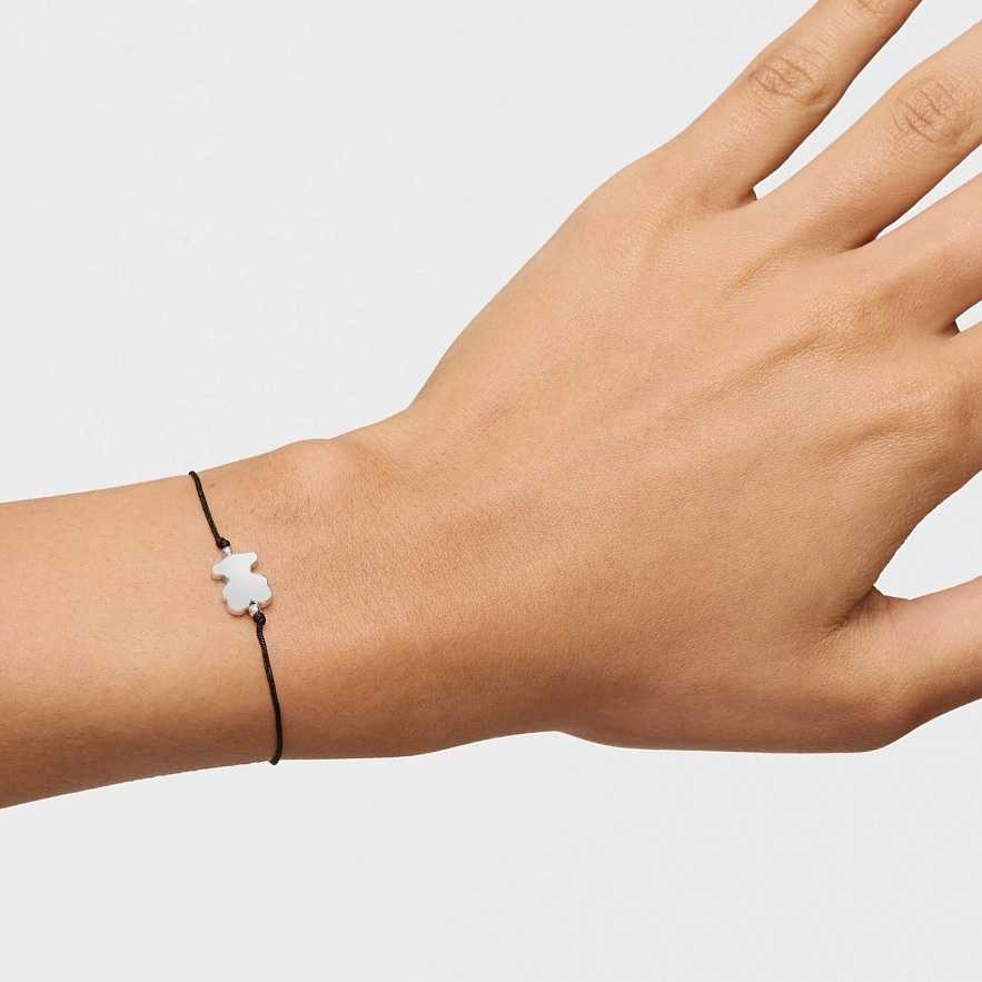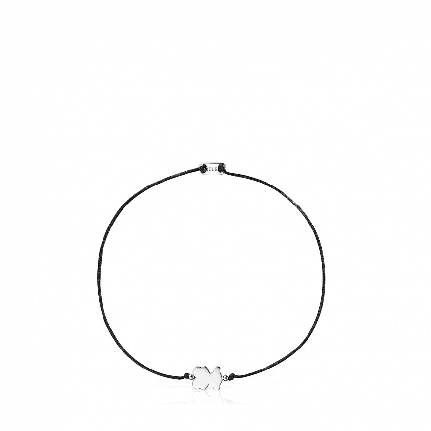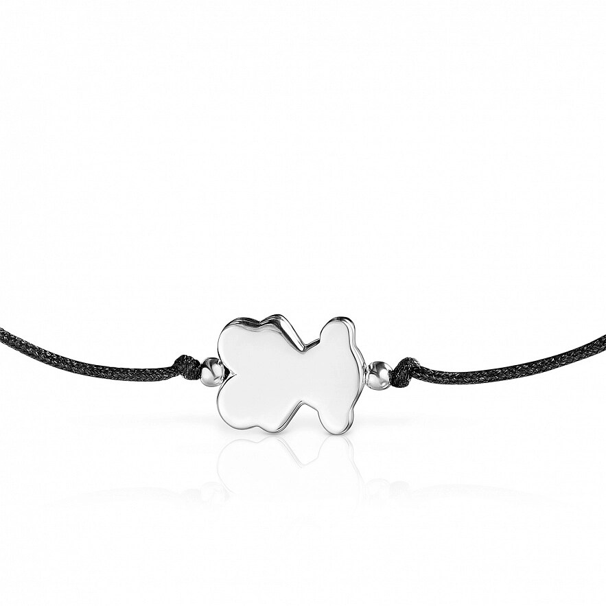 Браслет TOUS Sweet Dolls зі срібла 925 проби з ведмедиком та чорним нейлоном. Розмір ведмедика: 10 мм. Довжина браслета: 20 см. Застібка-слайдер.