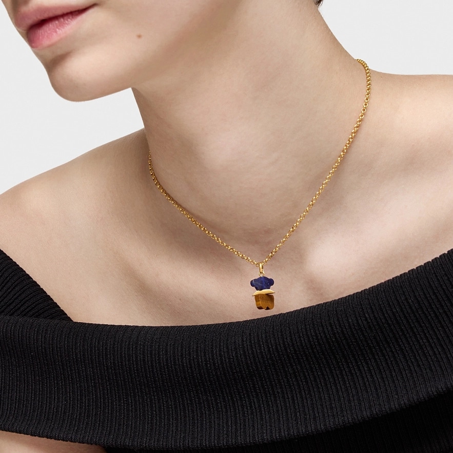 Кулон TOUS Sweet Dolls зі срібла 925 проби з покриттям Vermeil , з содалітом і тигрячим оком у формі ведмедика. Розмір підвіски: 16 мм. Цей виріб не включає в себе ланцюжок.
