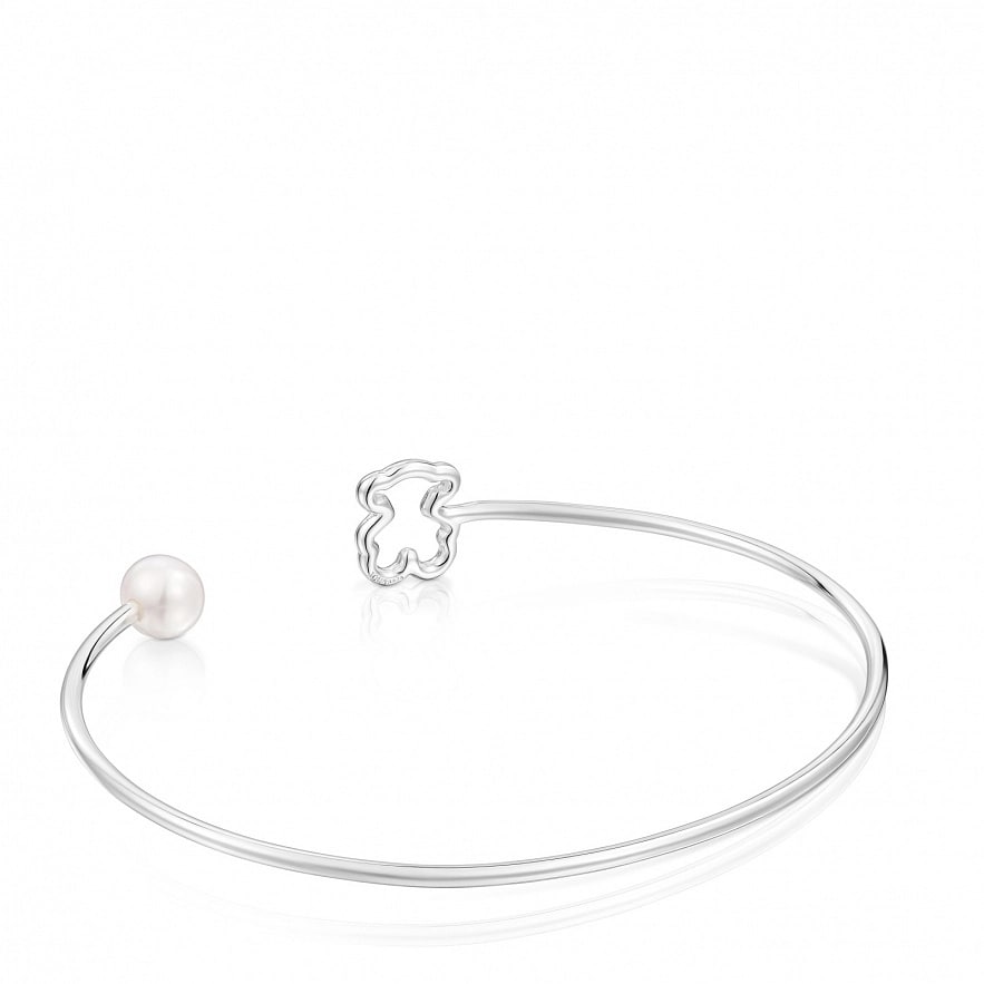 Браслет TOUS New Silueta зі срібла 925 проби з мотивом ведмедика та культивованою прісноводною перлиною. Розмір мотиву: 10 мм.