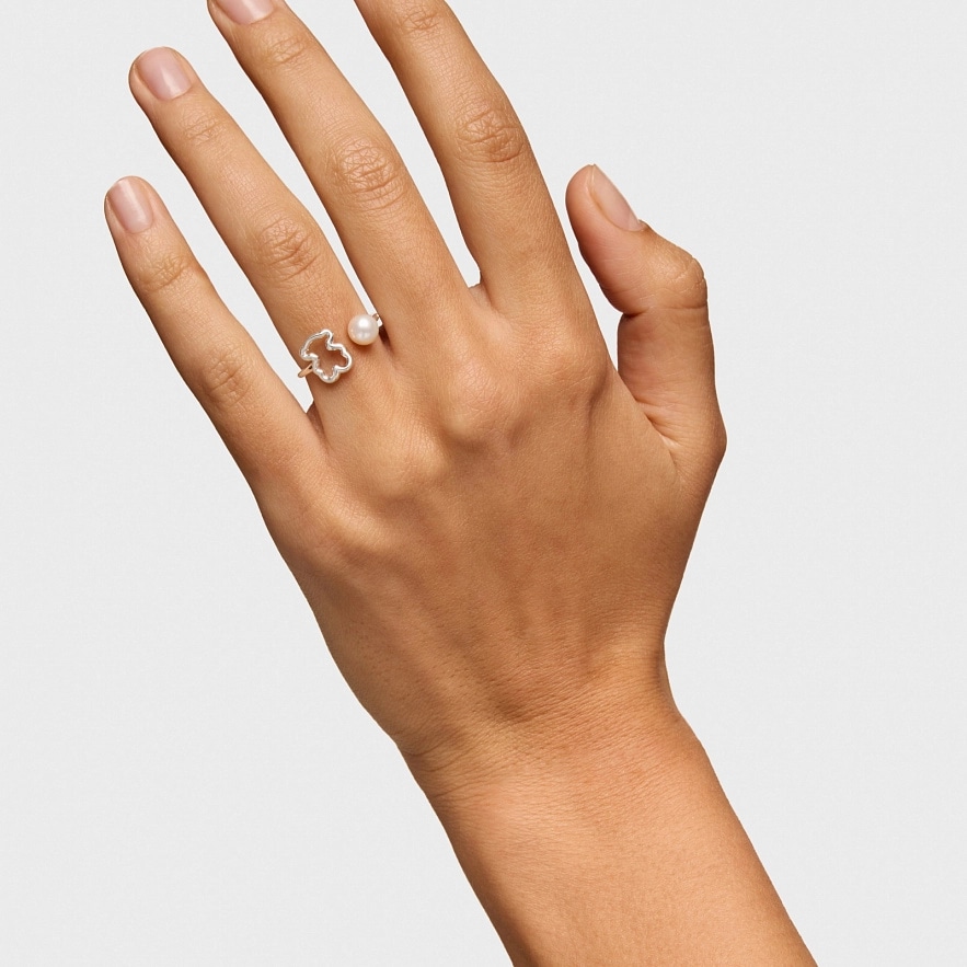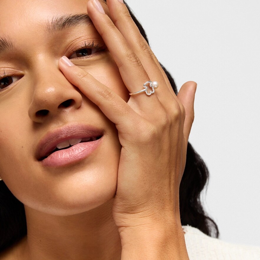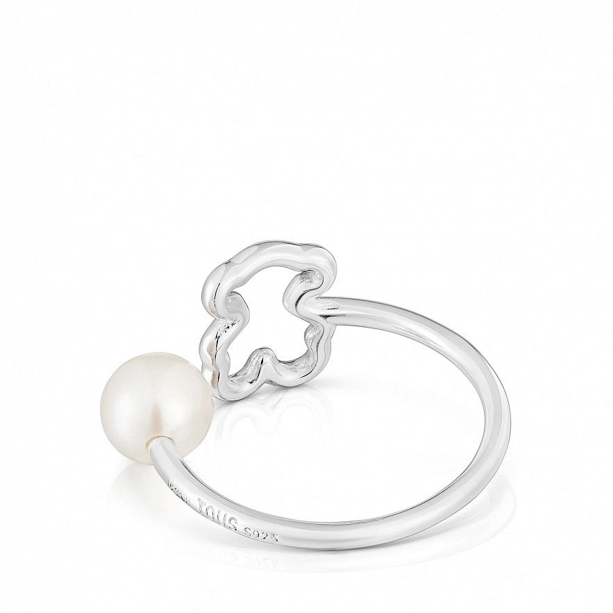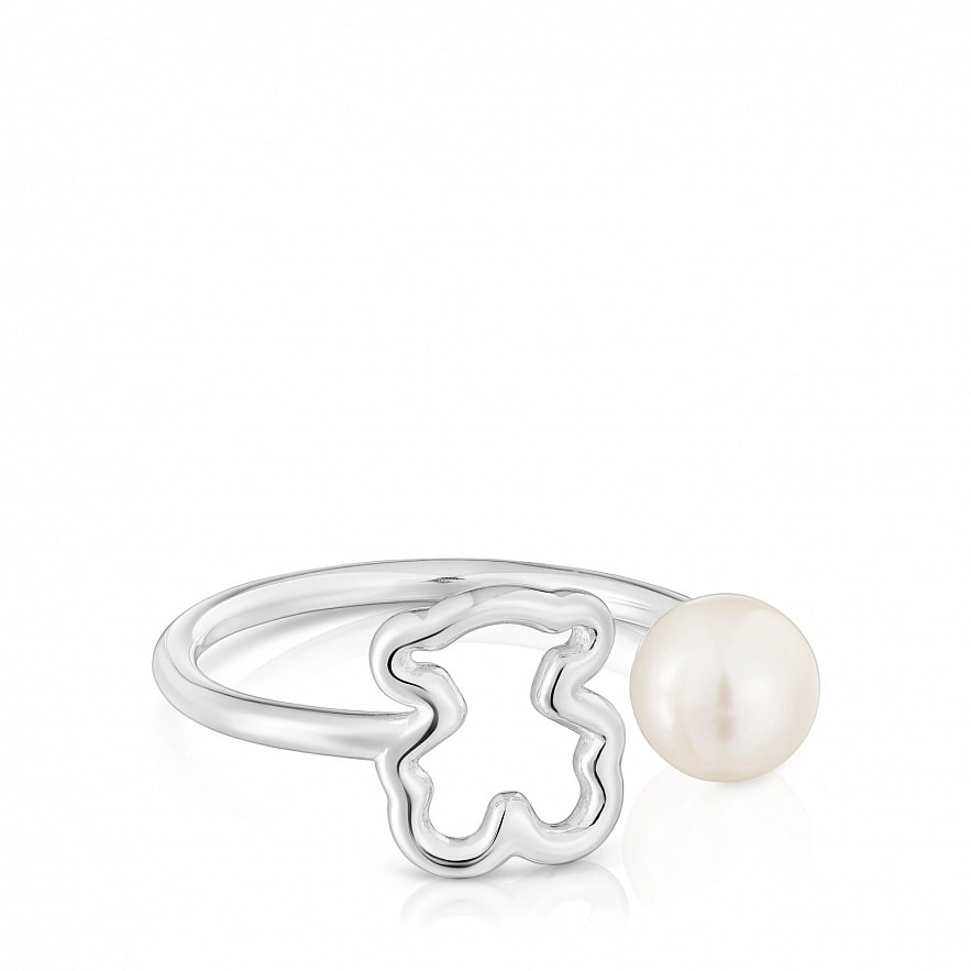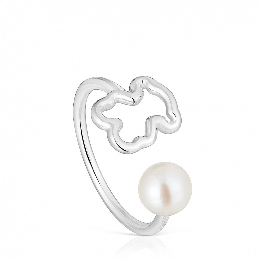 Каблучка TOUS New Silueta зі срібла 925 проби з мотивом ведмедика та культивованою прісноводною перлиною.