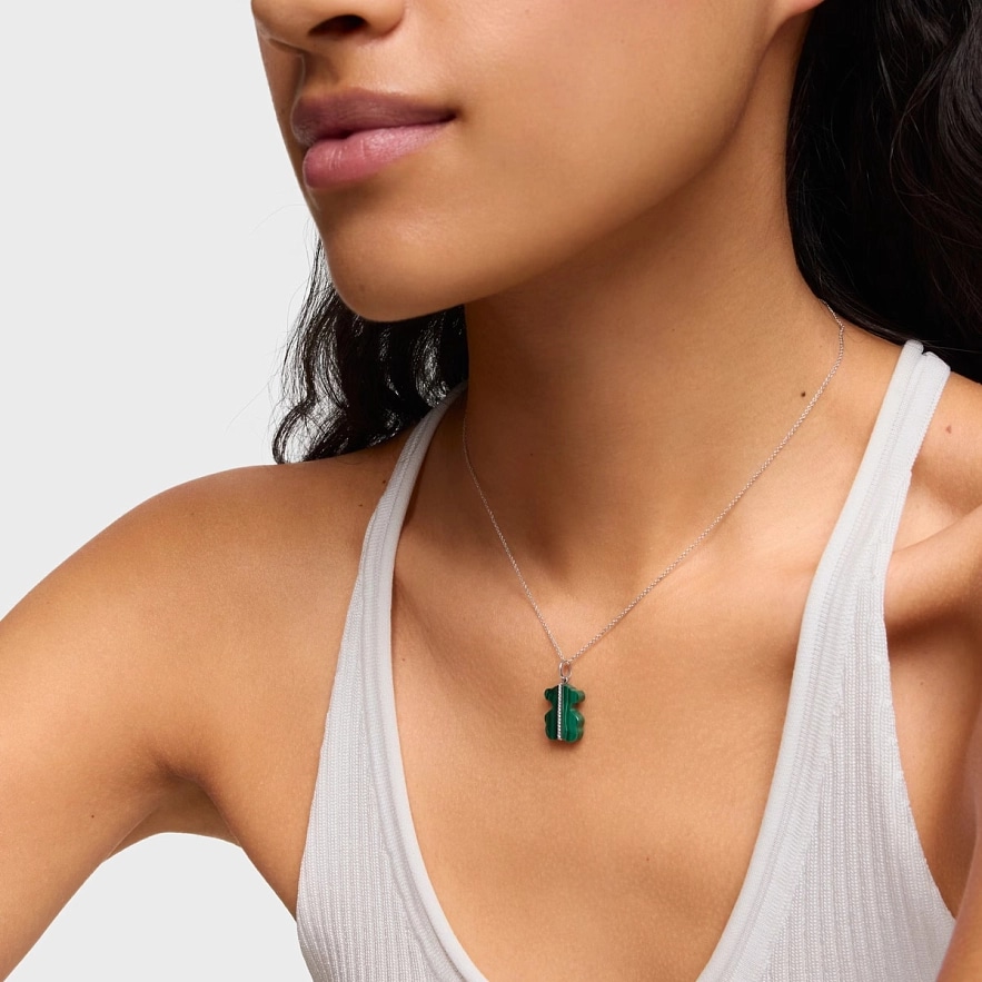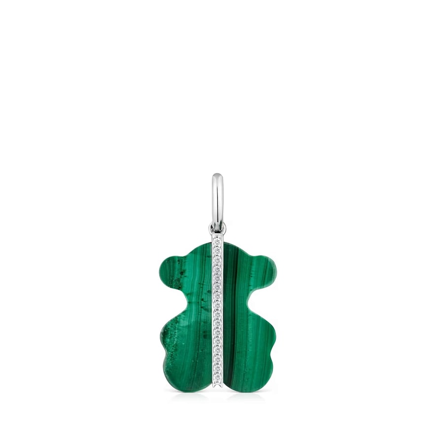 Кулон TOUS Sweet Dolls з 14-каратного білого золота з діамантами 0,04 карата і малахітом у формі ведмедика. Якість діамантів: H/SI. Розмір кулона: 16 мм. Ланцюжок до цього виробу не додається.