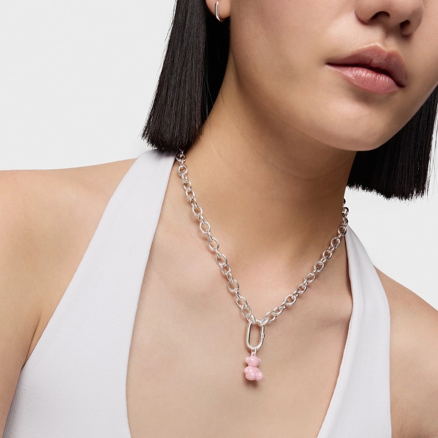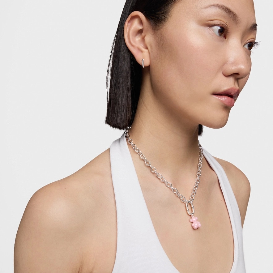 Кулон TOUS Bold Bear у вигляді ведмедика з перламутрової пастельно-рожевої кераміки із застібкою зі срібла 925 проби. Розмір ведмедика: 16 мм. Цей виріб не включає в себе ланцюжок.