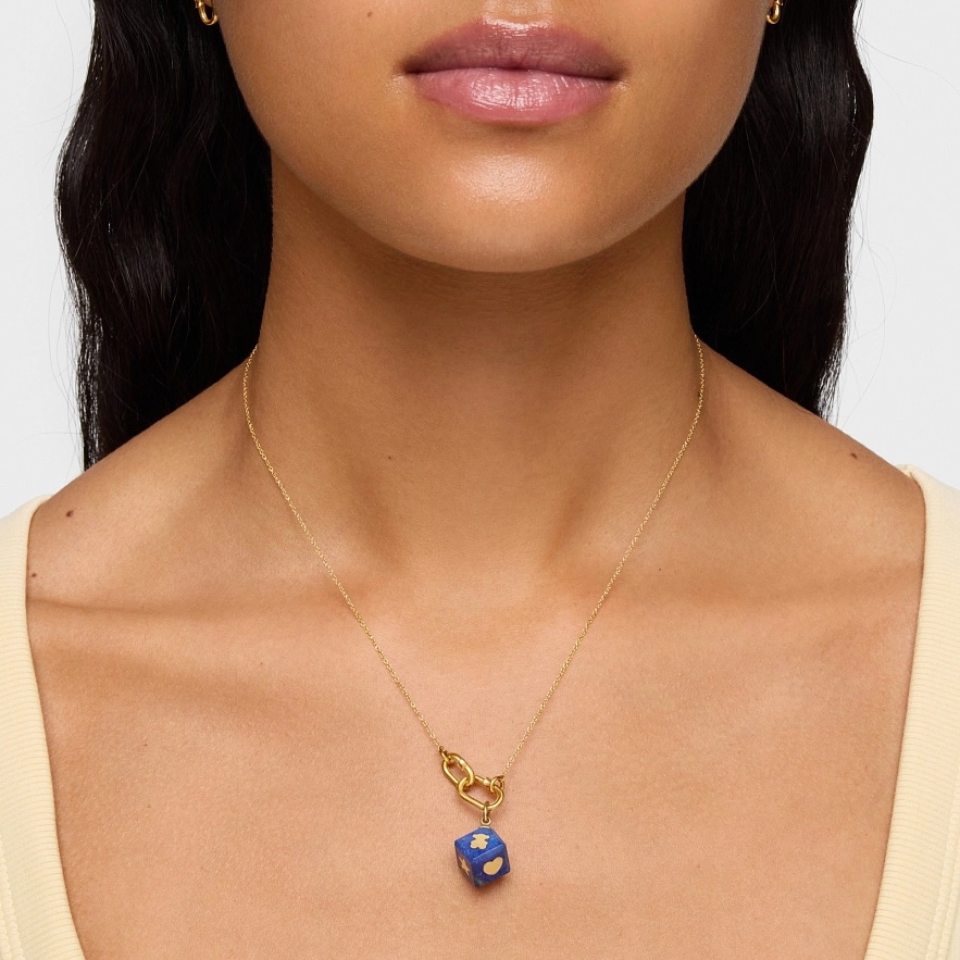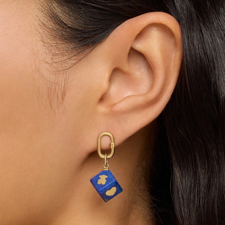 Кулон TOUS Cube з мотивами з жовтого золота 14 карат та лазуритом у формі куба. Розмір кулона: 10 мм. Цей виріб не включає ланцюжок.