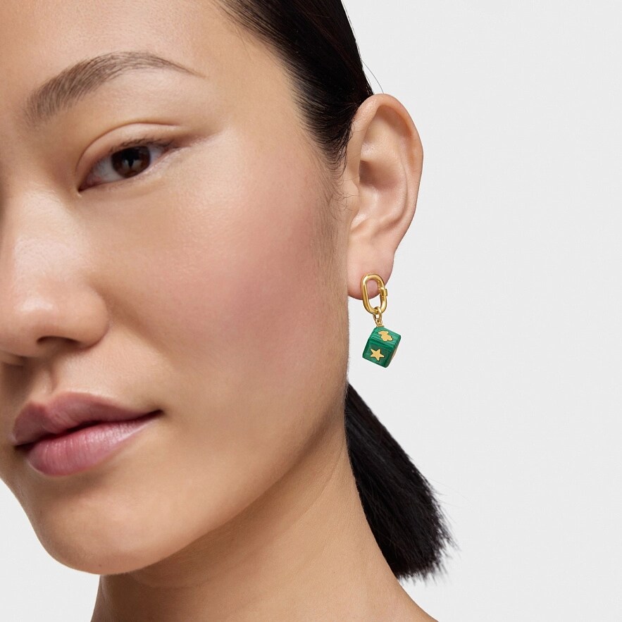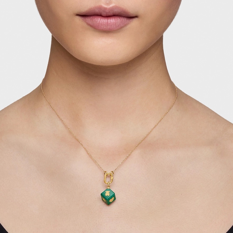 Кулон TOUS Cube з мотивами з жовтого золота 14 карат та малахіту у формі куба. Розмір кулона: 10 мм. Цей виріб не включає в себе ланцюжок.