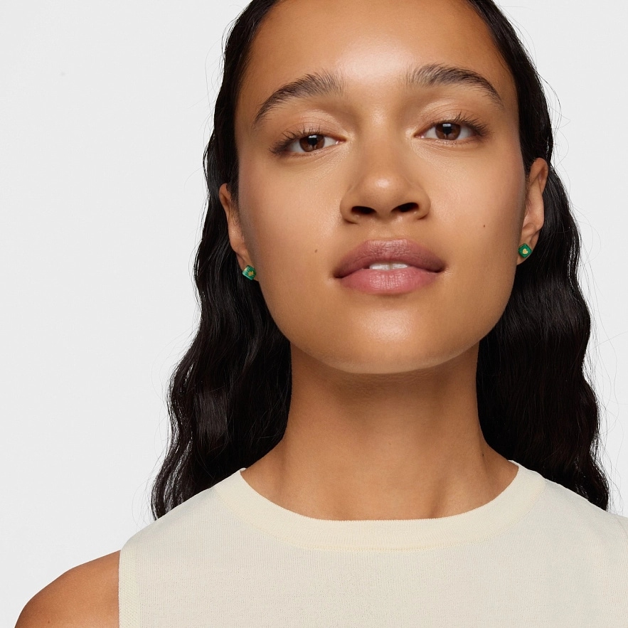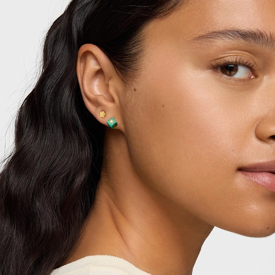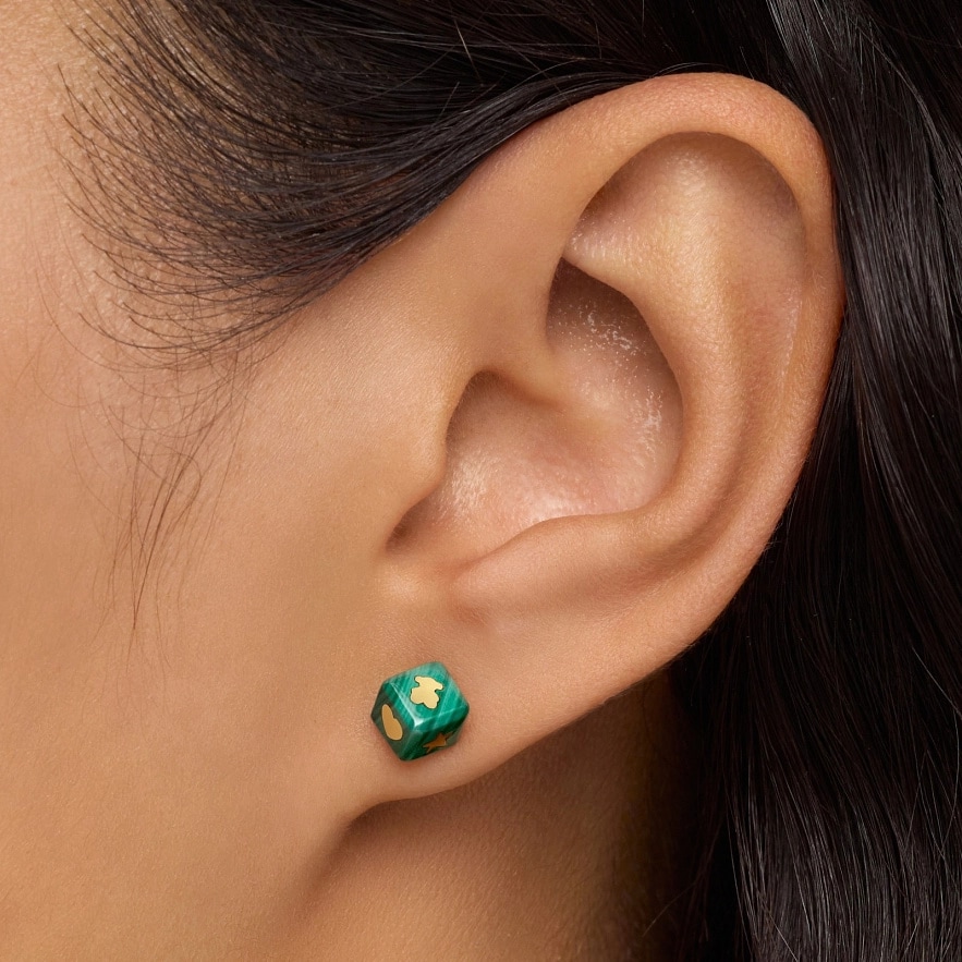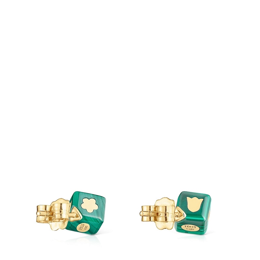 Сережки TOUS Cube з мотивами з жовтого золота 14 карат та малахіту у формі куба. Розмір сережок: 6 мм.