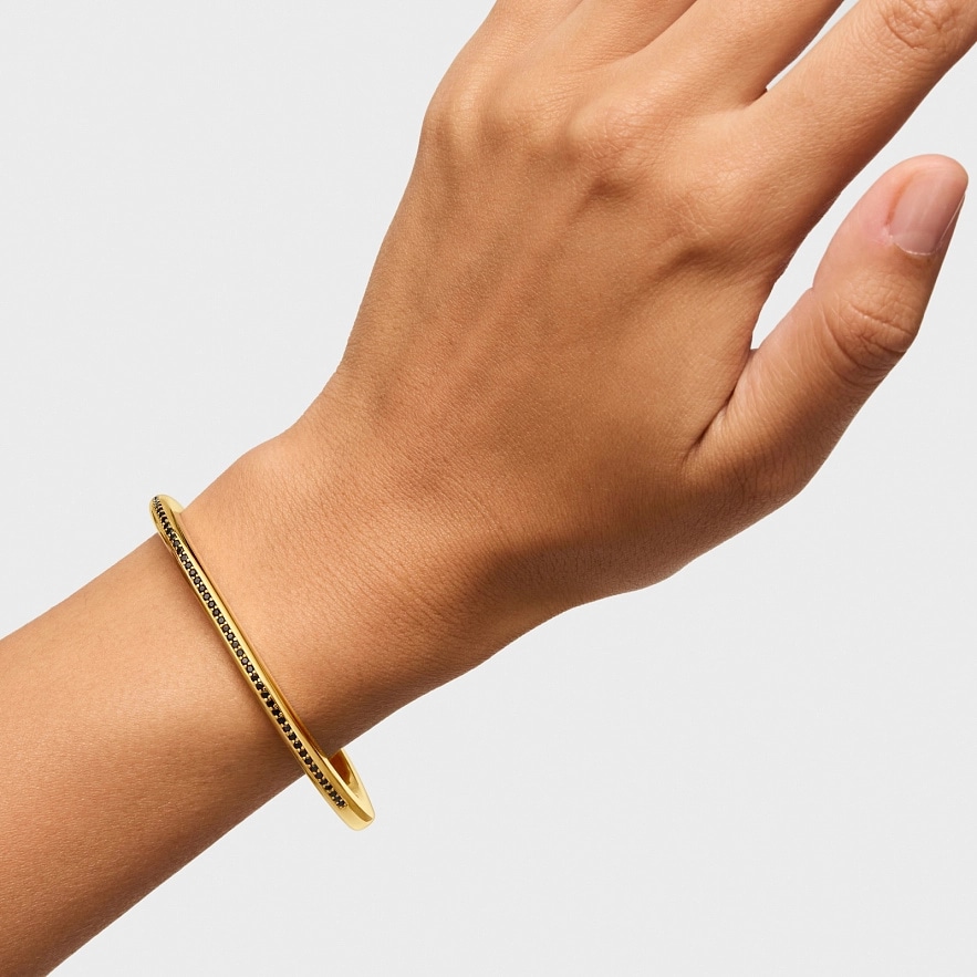Браслет TOUS Line зі срібла 925 проби з покриттям Vermeil з чорними шпінелями круглої огранки. Товщина браслета: 4 мм. Діаметр браслета: 25 мм.