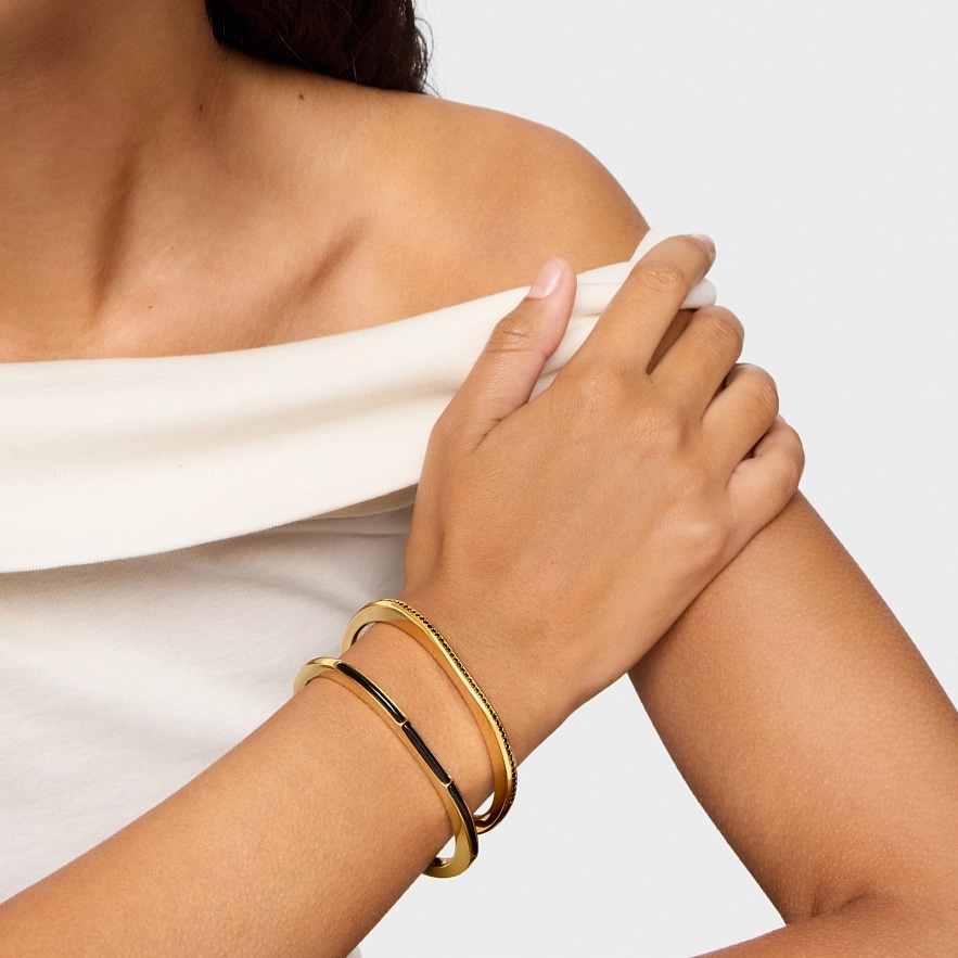 Браслет TOUS Line зі срібла 925 проби з покриттям Vermeil та оніксом. Товщина браслета: 4 мм. Діаметр браслета: 25 мм.