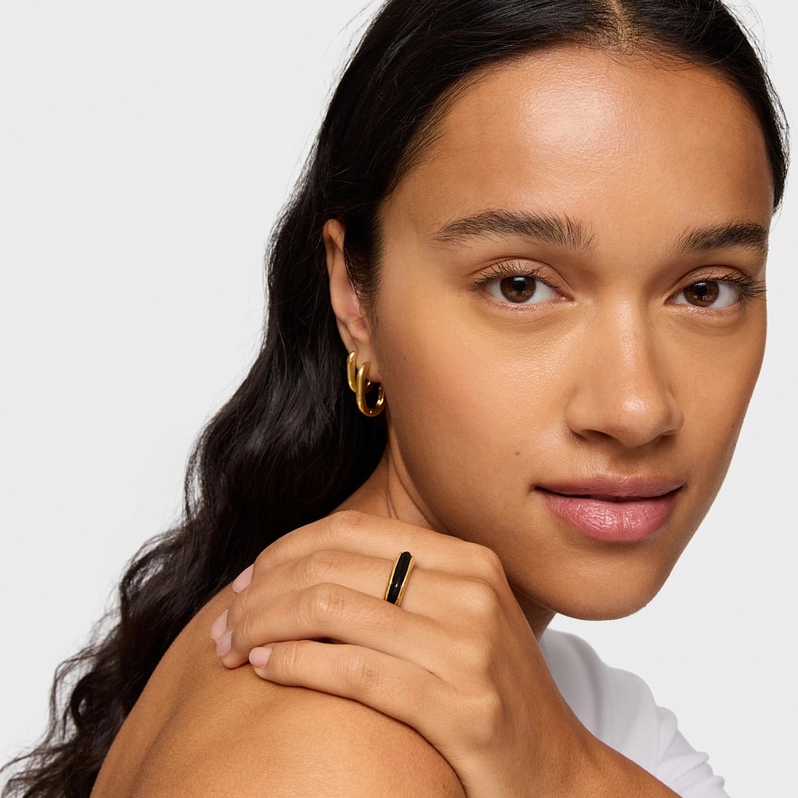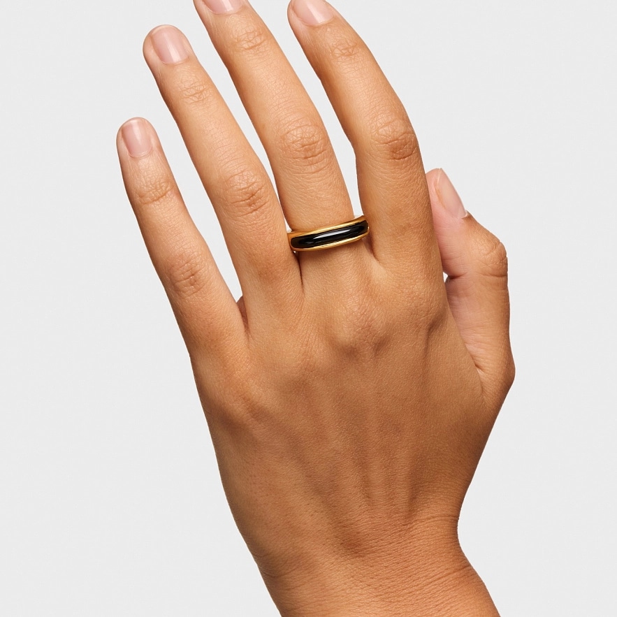 Каблучка TOUS Line зі срібла 925 проби з покриттям Vermeil та оніксом. Товщина каблучки: 6 мм.