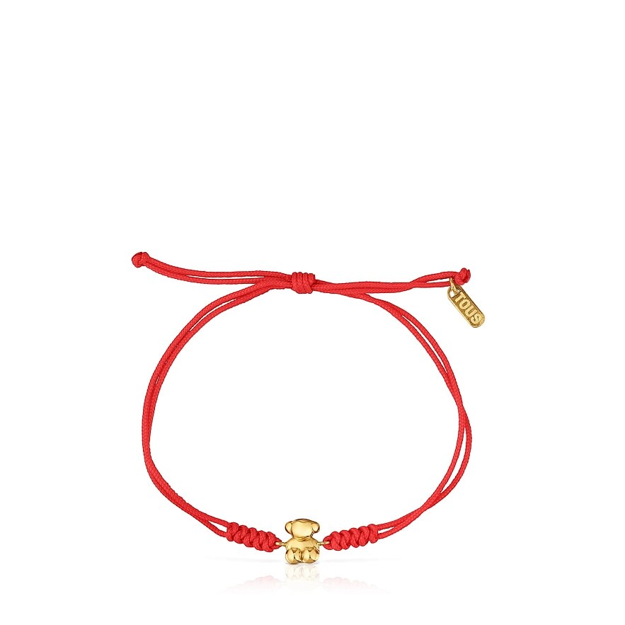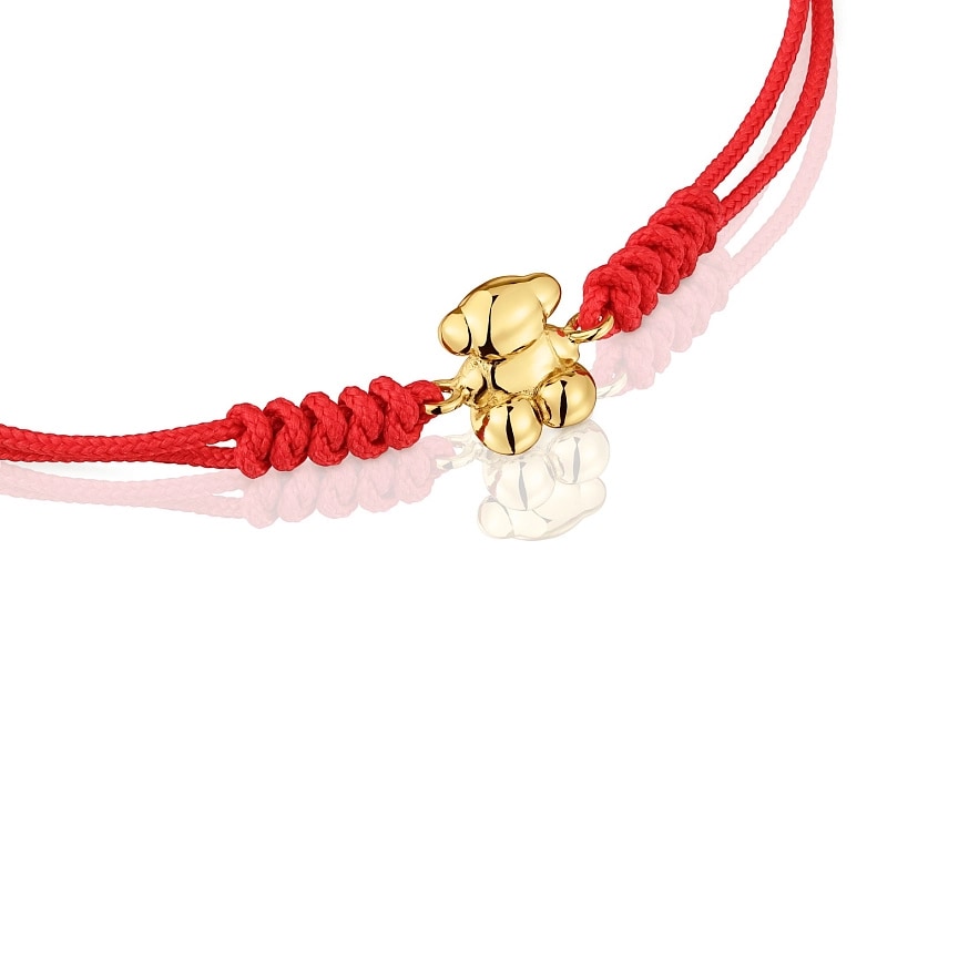 Браслет TOUS Bold Bear з червоного нейлону з мотивом ведмедика з 14-каратного жовтого золота. Розмір мотиву: 6,8 мм. Довжина браслета: 23 см. Застібка-слайдер.