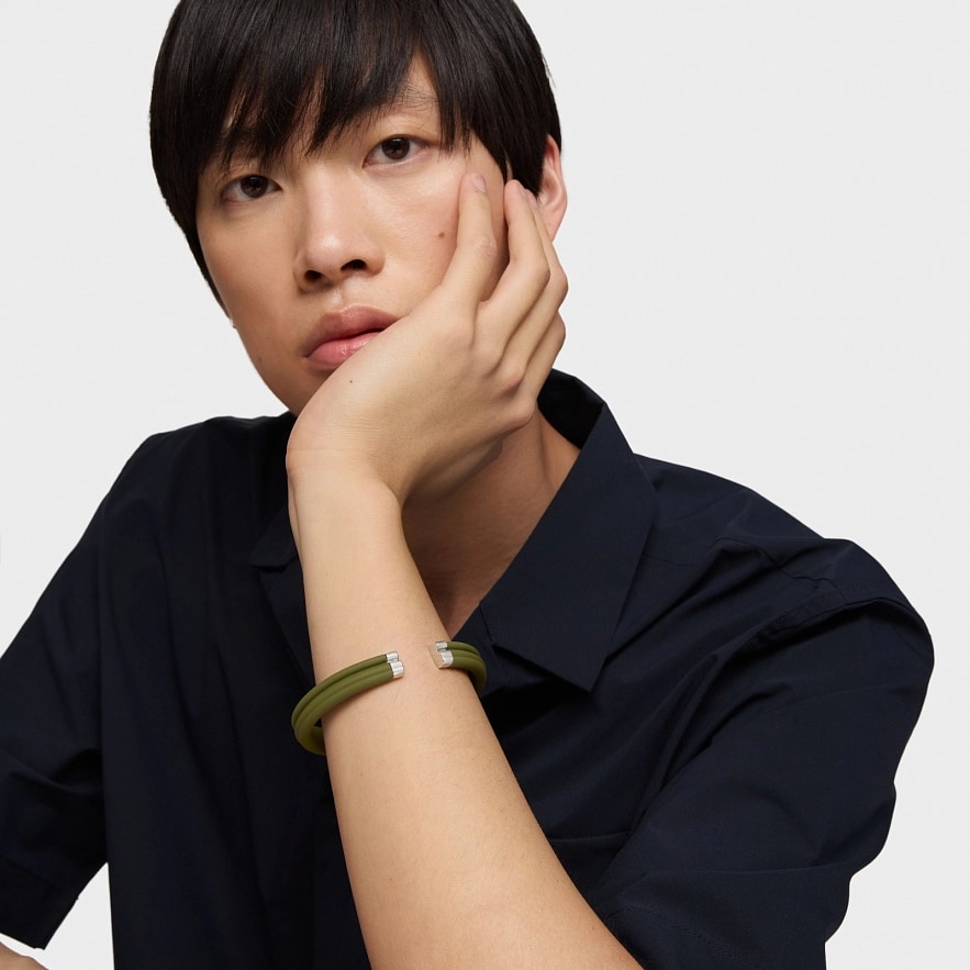 Браслет TOUS Man із нержавіючої сталі та зеленої гуми. Ширина браслета: 9,74 мм. Діаметр браслета: 10 мм.