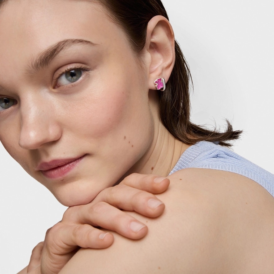 Сережки TOUS Icon Color LGG зі срібла 925 проби з лабораторно вирощеним огранованим рубіном у формі ведмедика. Розмір сережок: 10 мм. Виріб створений з лабораторно вирощеним дорогоцінним каменем.