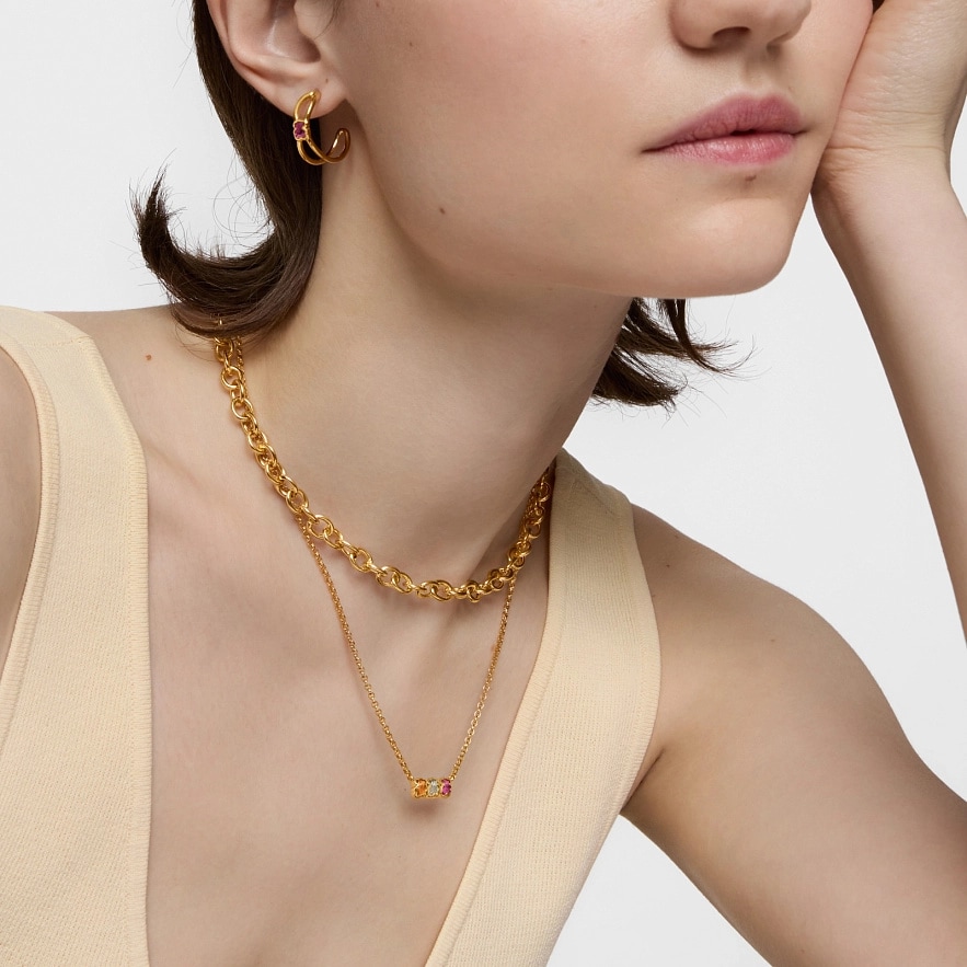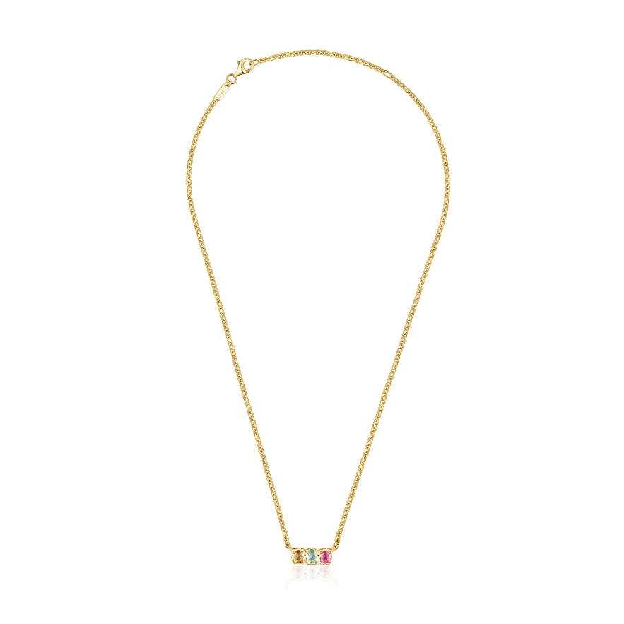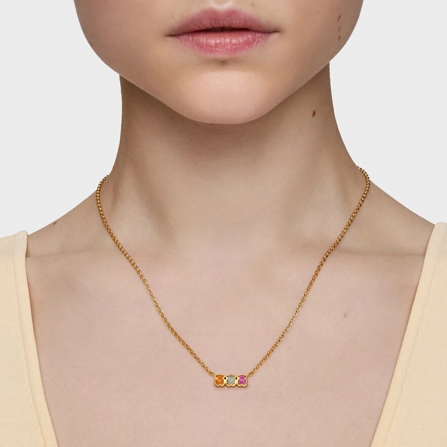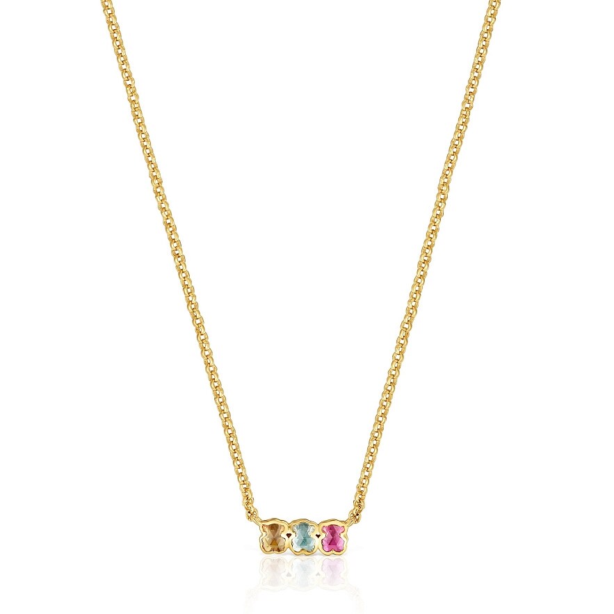 Намисто TOUS Icon Color LGG зі срібла 925 проби з покриттям Vermeil , рубіном, вирощеним у лабораторії, м'ятно-зеленим сапфіром і помаранчевим сапфіром у вигляді ведмедика. Розмір ведмедиків: 5 мм. Довжина намиста: 45 см. Застібка-лобстер. Виріб створений з використанням лабораторно вирощених дорогоцінних каменів.