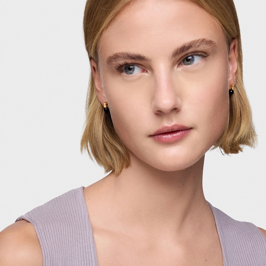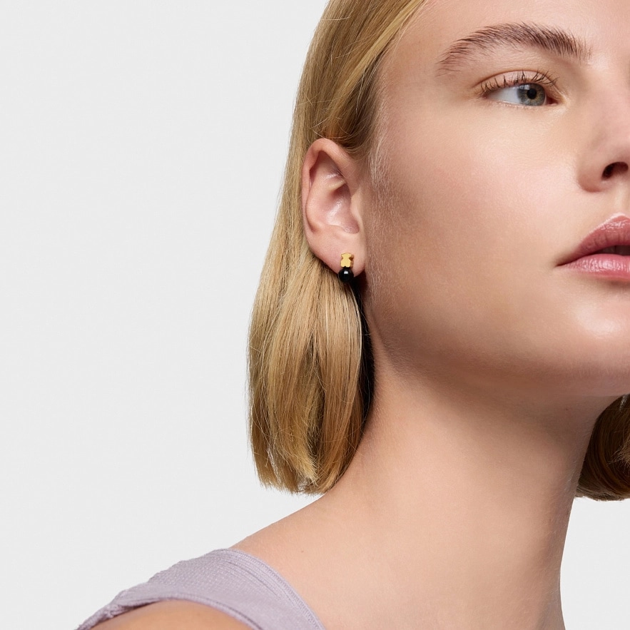 Сережки TOUS Icon Mesh зі срібла 925 проби з покриттям Vermeil та мотивом ведмедика та гладкою кулькою оніксу. Розмір сережок: 6 мм.