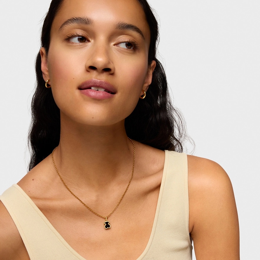 Кулон TOUS Galaxy зі срібла 925 проби з покриттям Vermeil та чорному акриловому склі-метакрилат, у формі ведмедика. Розмір кулона: 11 мм. Ланцюжок до цього виробу не входить.