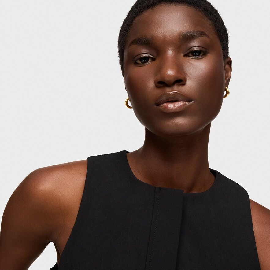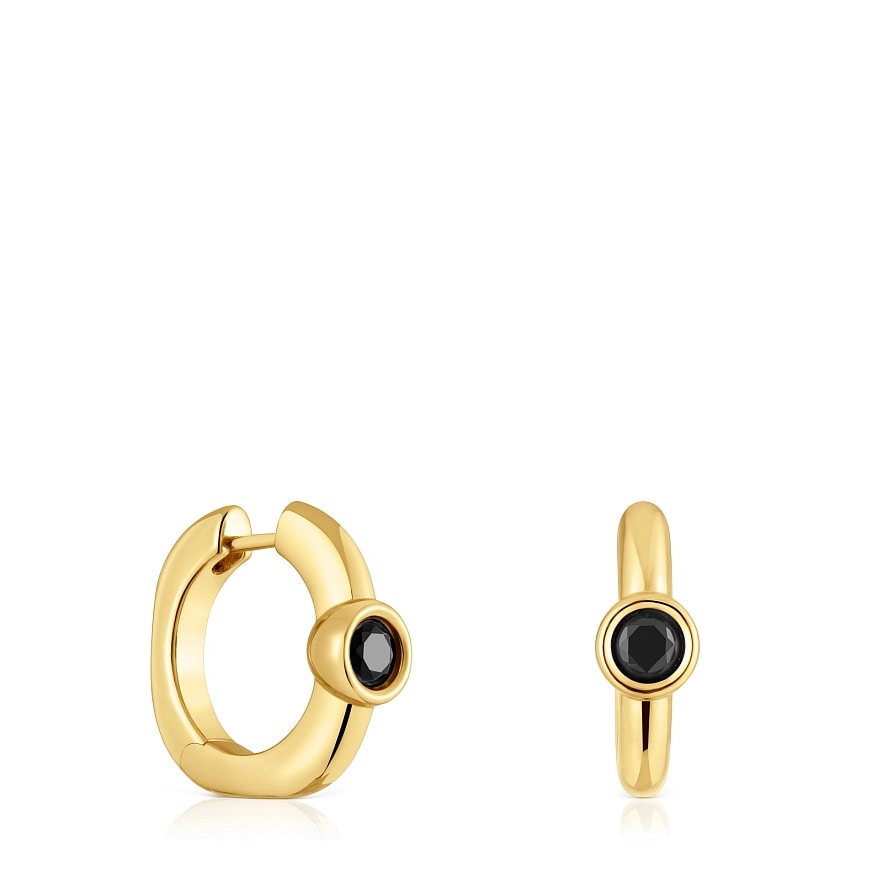 Сережки TOUS Line зі срібла 925 проби з покриттям Vermeil та фацетованим круглим чорним шпінелем. Розмір сережок: 12 мм.