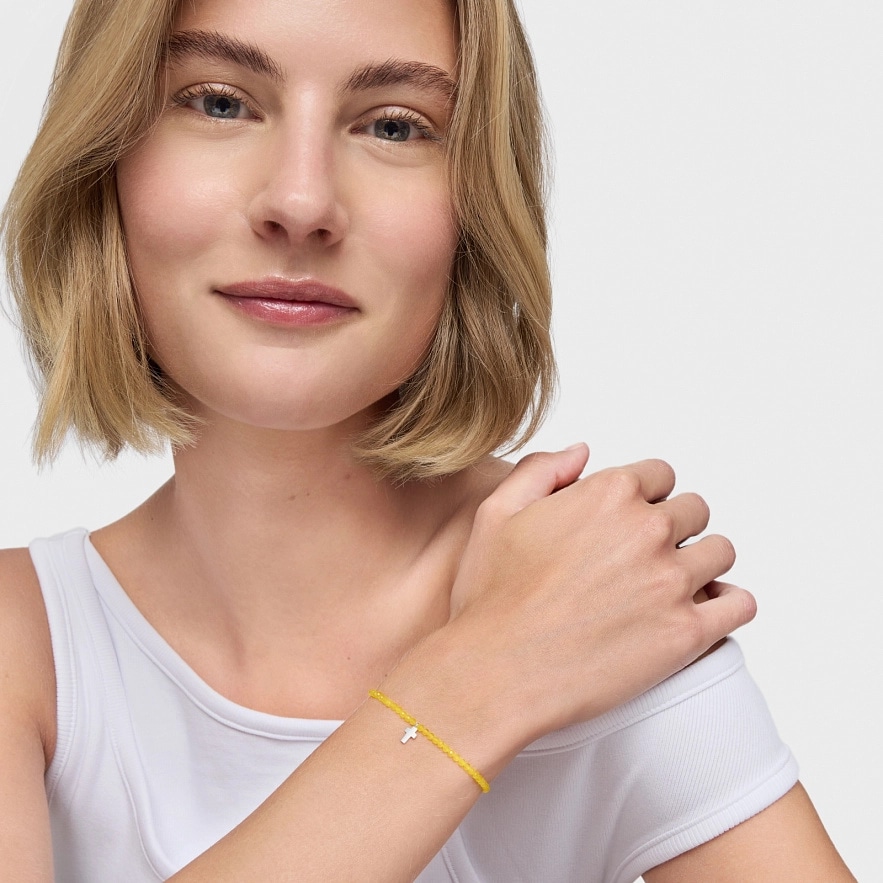 Браслет TOUS Motifs зі срібла 925 проби з ограненими круглими намистинами з жовтої кварциту та підвіскою у формі хрестика. Довжина браслета: 17 см.
