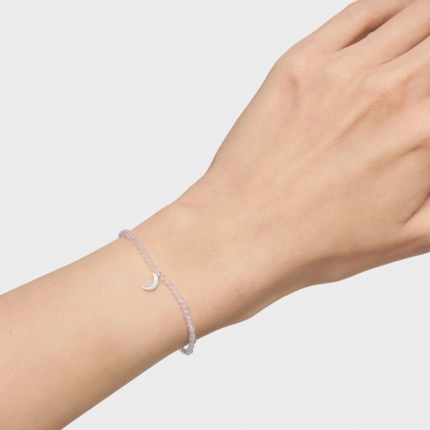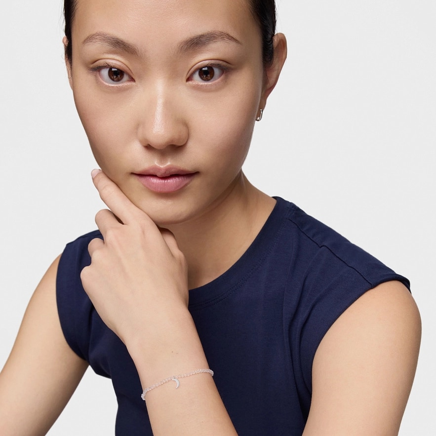 Браслет TOUS Motifs зі срібла 925 проби та ограненими круглими кульками з гірського кришталю і мотивом півмісяця. Довжина браслета: 17 см.
