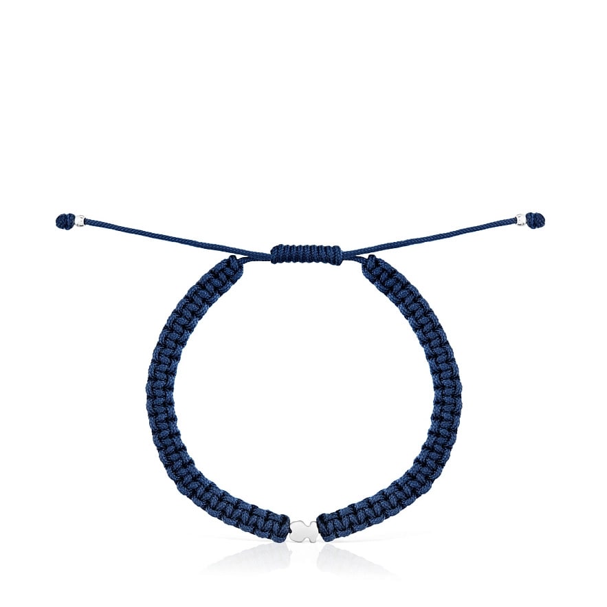 Браслет TOUS Motifs зі срібла 925 проби та мотивом ведмедика і зеленим нейлоном. Довжина браслета: 17 см. Застібка-слайдер.