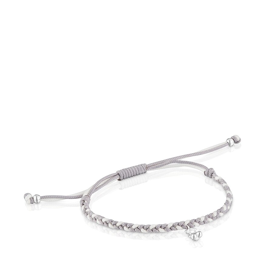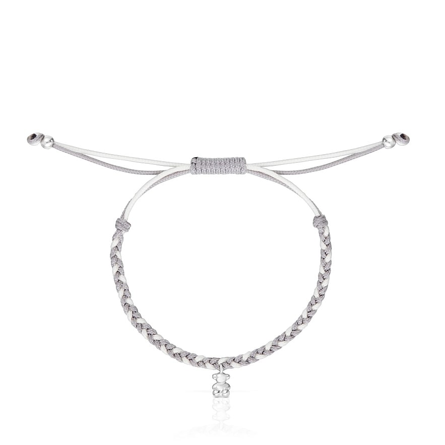 Браслет TOUS Motifs зі срібла 925 проби та мотивом ведмедика і сірим нейлоном. Довжина браслета: 17 см. Застібка-слайдер.