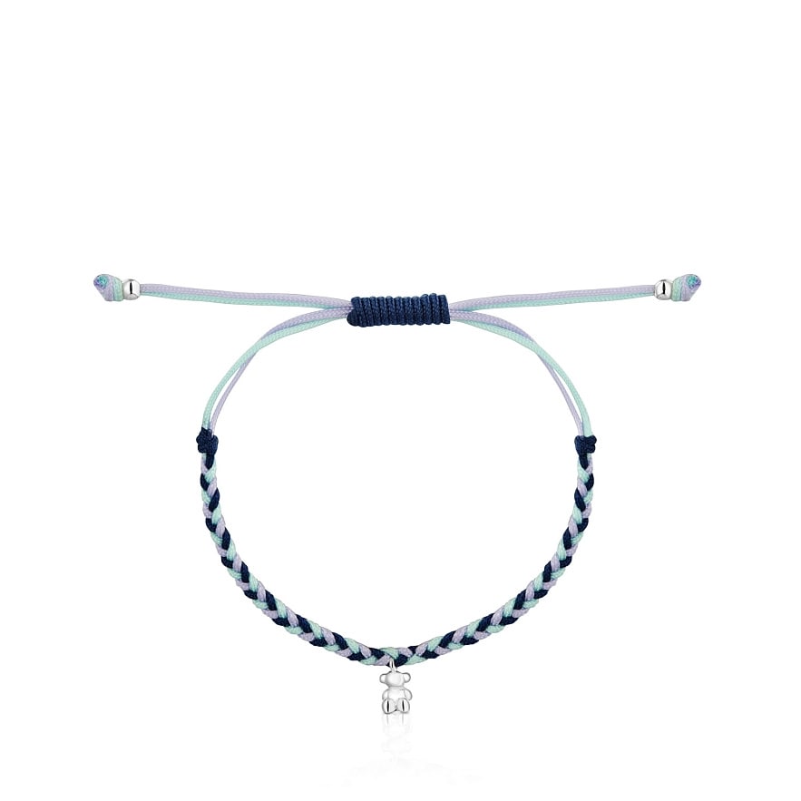Браслет TOUS Motifs зі срібла 925 проби та мотивом ведмедика і синім нейлоном. Довжина браслета: 17 см. Застібка-слайдер.