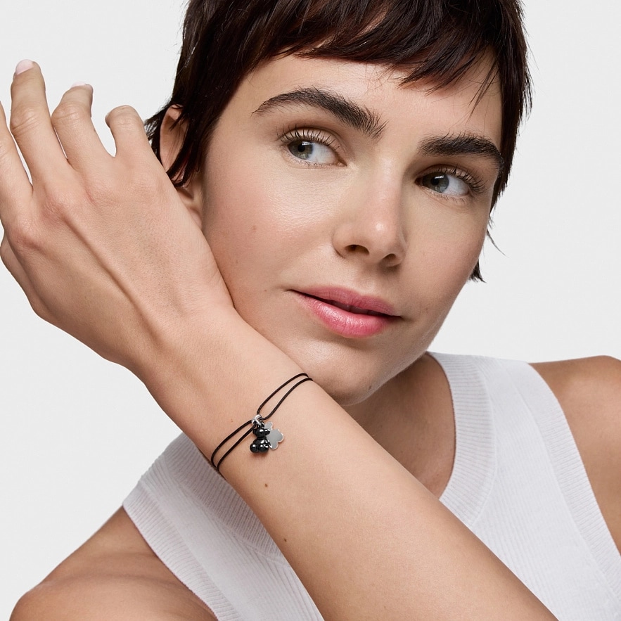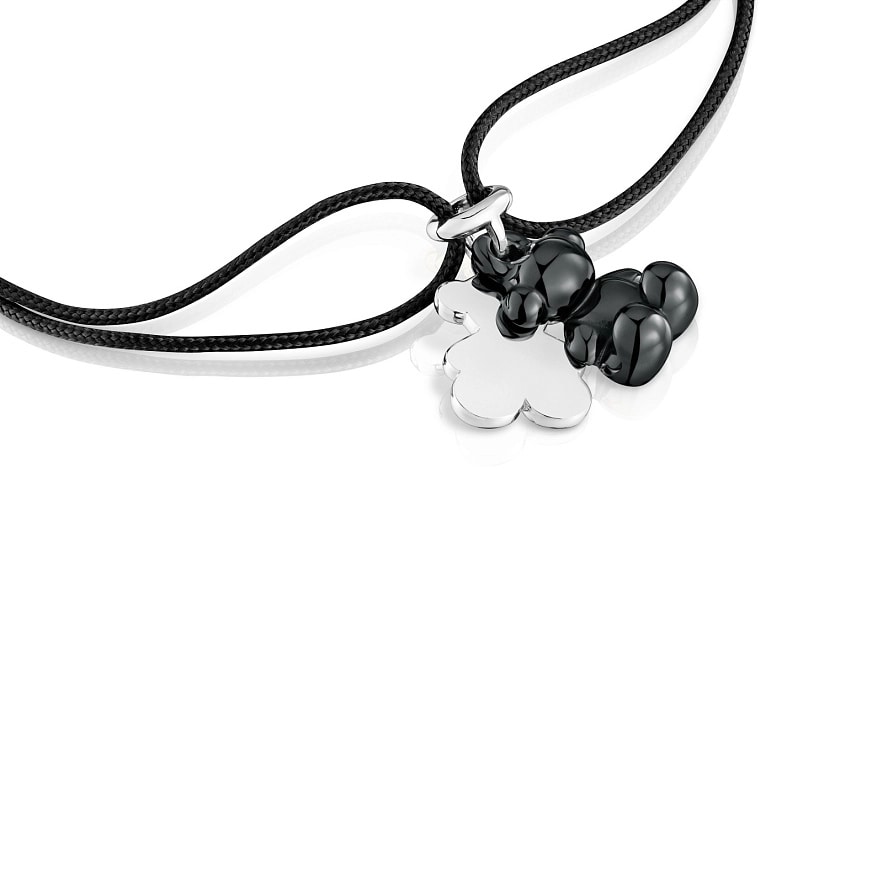 Браслет TOUS Bold Bear з чорного нейлону з мотивом ведмедика з чорної кераміки та підвіскою зі срібла 925 проби. Розмір кулона: 11 мм. Довжина браслета: 17 см. Застібка-слайдер.