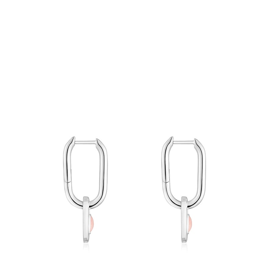 Сережки-кільця TOUS Camille зі срібла 925 проби та рожевого кварцу у формі фасетованого ведмедика. Розмір сережок: 25 мм.