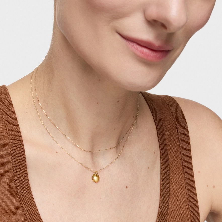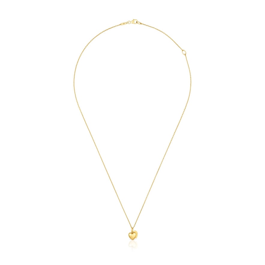 Намисто TOUS Flechazo з 14-каратного жовтого золота з мотивом подвійного серця. Розмір мотиву: 7 мм. Довжина намиста: 45 см. Застібка-метелик.