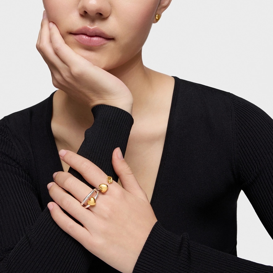 Каблучка TOUS Flechazo зі срібла 925 проби з 18-каратним золотим покриттям, подвійна з мотивом у вигляді серця. Виріб виготовлений зі срібла 925 проби з 18-23-каратним золотим покриттям товщиною 3 мікрони. Така якість гарантує більшу довговічність прикраси.