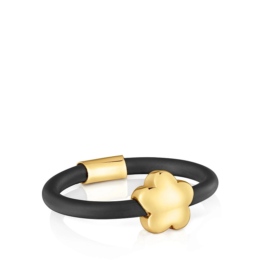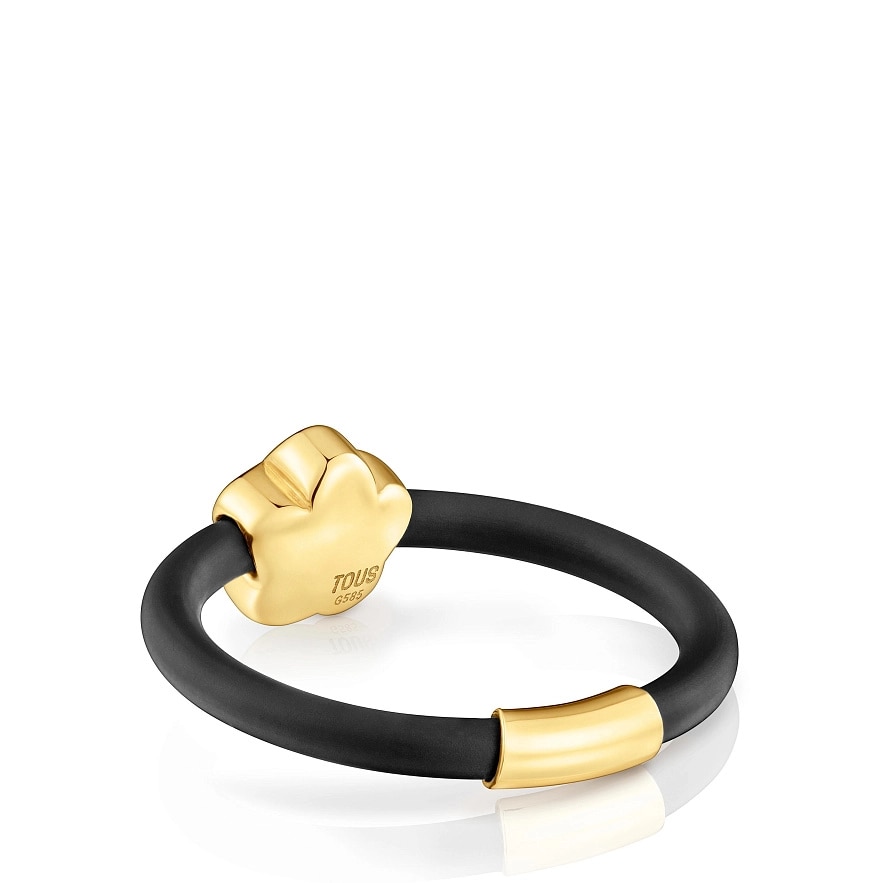 Каблучка TOUS Bold Motif з мотивом серця з 14-каратного жовтого золота та чорного каучуку. Розмір мотиву: 7 мм.