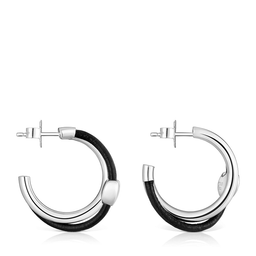 Сережки-кільця TOUS Bold Motif зі срібла та чорного каучуку з мотивом серця. Розмір сережок: 24 мм. Застібка-пусет.