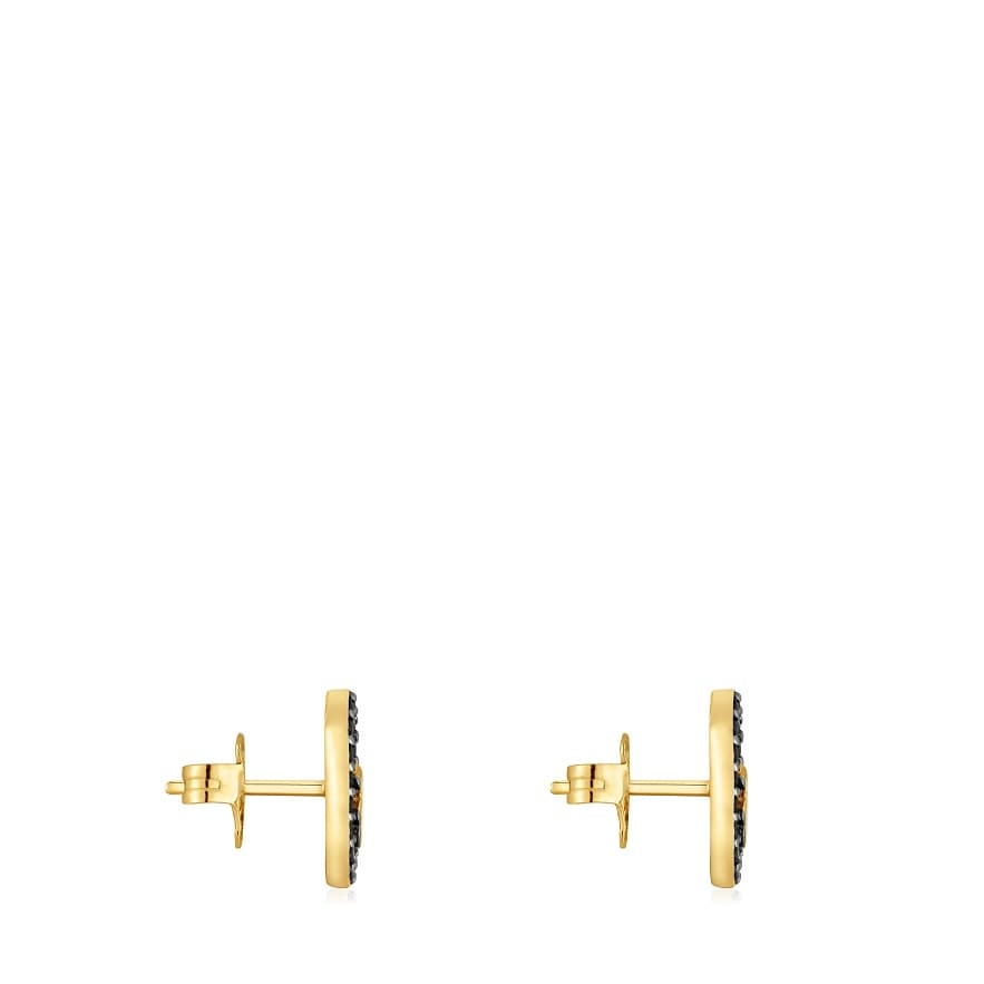 Сережки TOUS Camille зі срібла 925 проби з покриттям з 18-каратного жовтого золота та круглими фасетованими шпінелями чорного кольору. Розмір сережок: 11 мм. Застібка-клапан. Виріб виготовлений із срібла 925 проби з покриттям із золота 18-23 карат товщиною 3 мікрон. Така якість гарантує більшу довговічність прикраси.