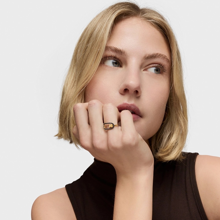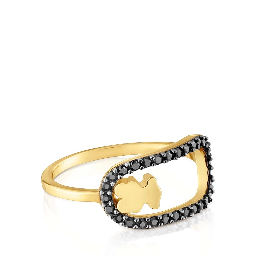 Каблучка TOUS Camille зі срібла 925 проби з 18-каратним золотим покриттям та фасетованими круглими шпінелями чорного кольору з мотивом ведмедя. Розмір мотиву: 15 мм. Виріб виготовлений зі срібла 925 проби з 18-23-каратним золотим покриттям товщиною 3 мікрони. Така якість гарантує більшу довговічність прикраси.