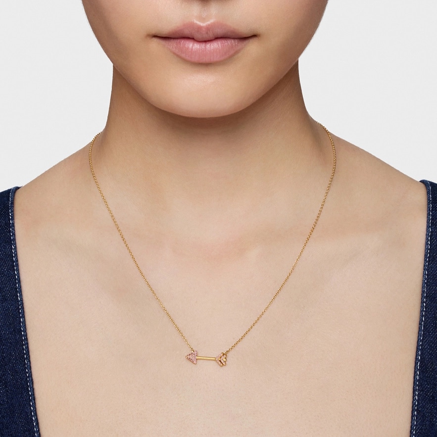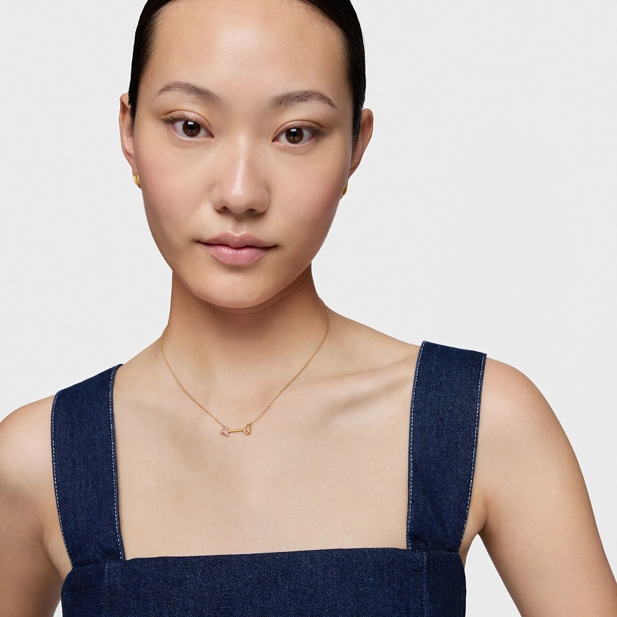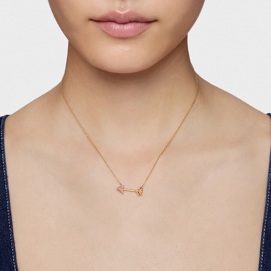 Намисто TOUS Flechazo зі срібла 925 проби з 18-каратним золотим покриттям з мотивом стріли та огранованими круглими родолітами. Довжина намиста: 45 см. Застібка-пружина. Виріб виготовлений зі срібла 925 проби з 18-23-каратним золотим покриттям товщиною 3 мікрони. Така якість гарантує більшу довговічність прикраси.