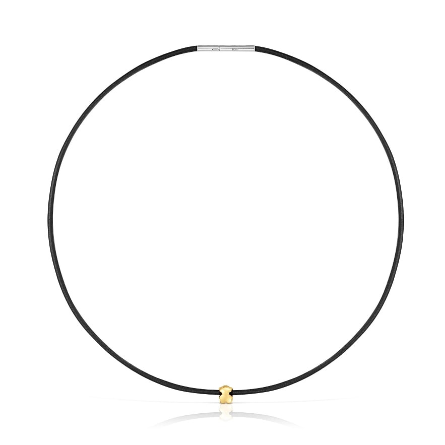 Намисто TOUS Bold Motif з мотивом ведмедя з 14-каратного жовтого золота та чорного каучуку. Довжина намиста: 45 см. Розмір мотиву: 7 мм. Подвійна застібка-кліпса.