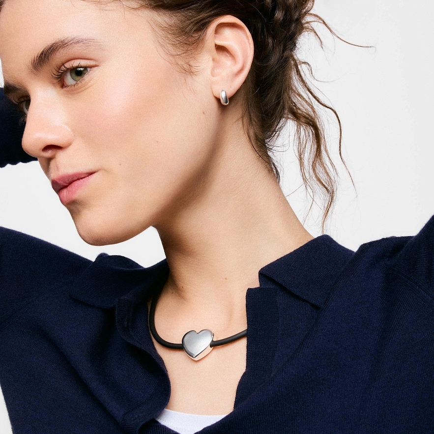 Намисто TOUS Bold Motif зі срібла та чорного каучуку з мотивом серця. Довжина: 45 см. Розмір мотиву: 24 мм. Подвійна застібка.