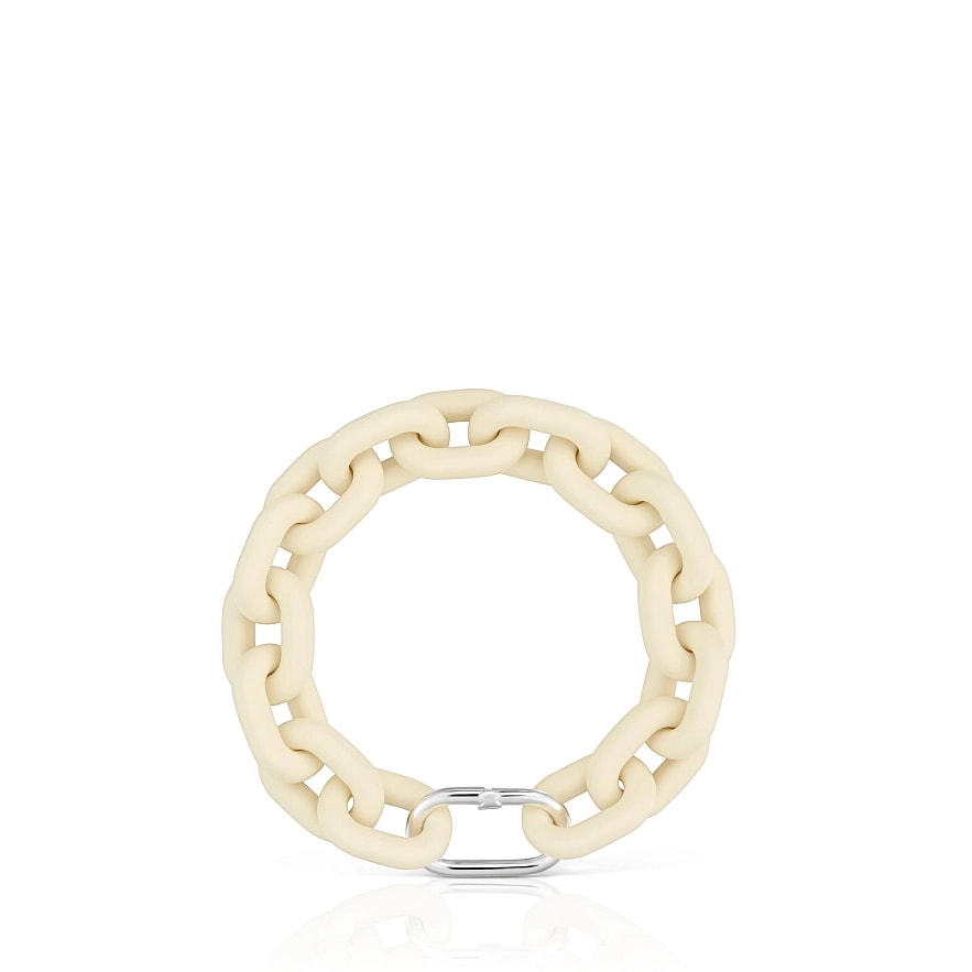 Браслет TOUS Hold з овальними ланками зі срібла 925 проби бежевого кольору з кільцем Hold. Розмір кільця: 20 мм. Довжина браслета: 19,5 см. Застібка у вигляді кільця Hold. Примітка: Ви можете персоналізувати цей виріб, додавши підвіски, міні-підвіски або каблучки.