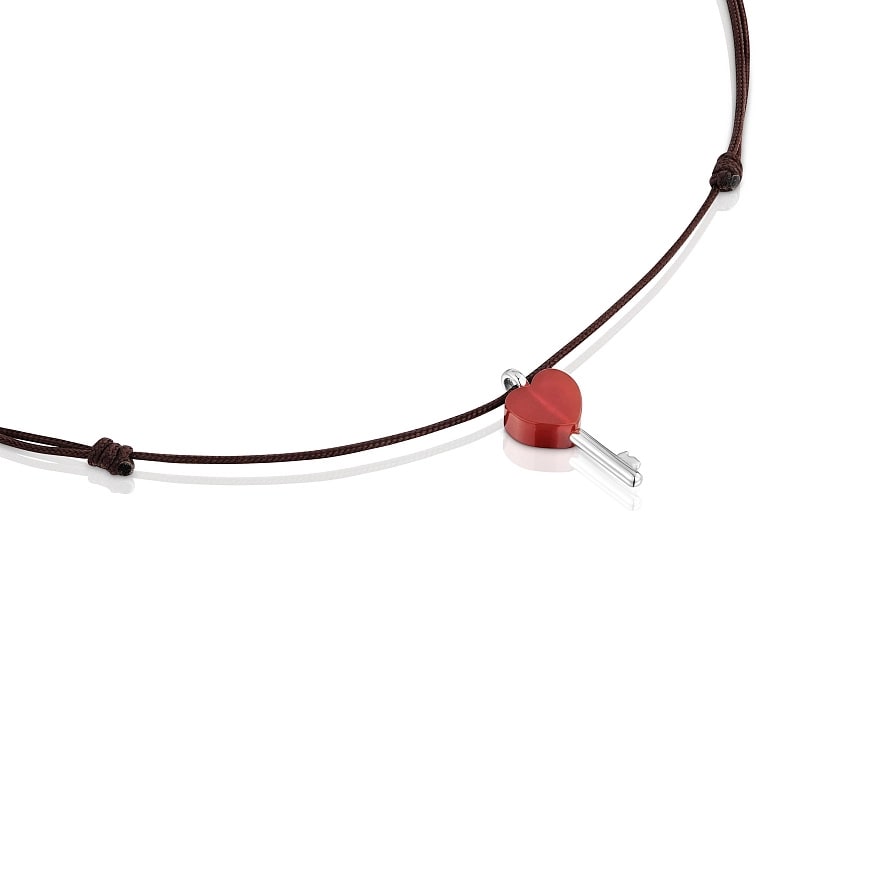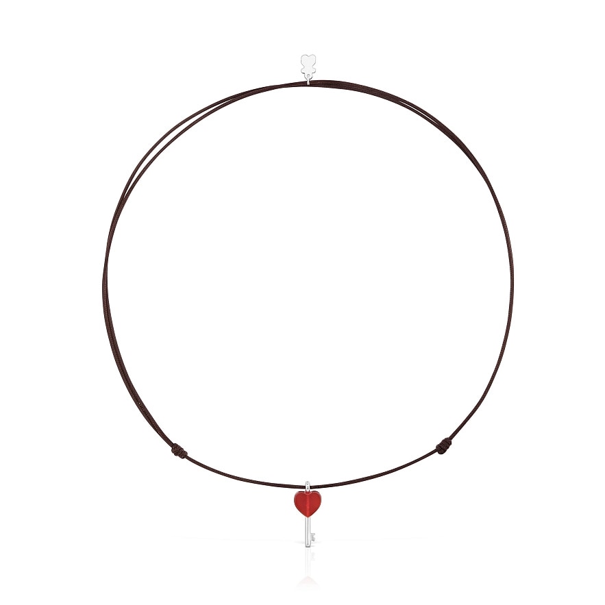 Нейлонове намисто TOUS Unlock коричневого кольору з гранованим серцем із карнеліану та сріблом 925 проби. Розмір підвіски: 20 мм. Довжина намиста: 70 см. Регульована застібка-слайдер.