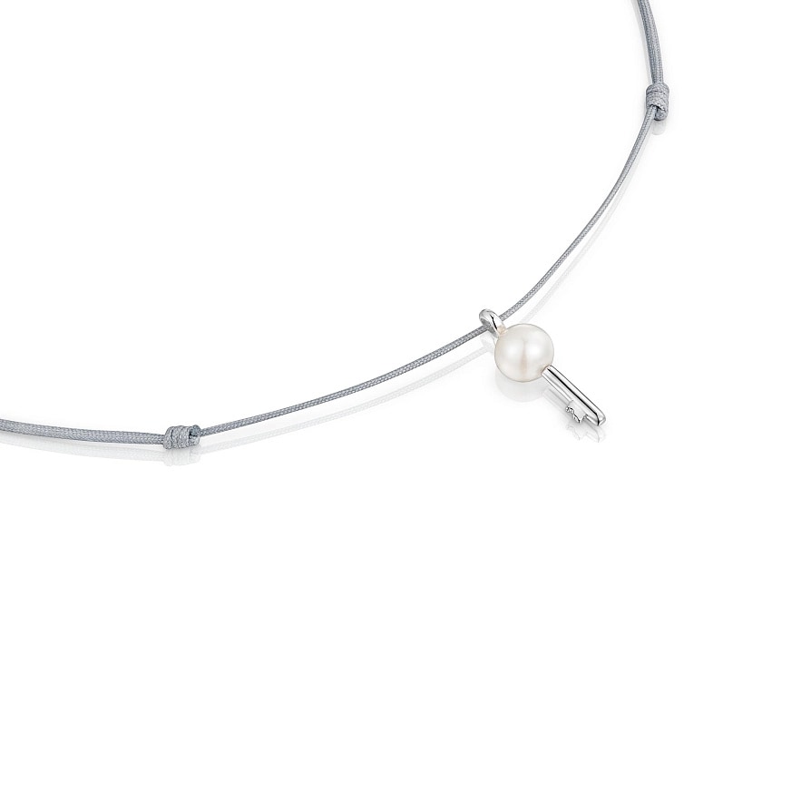 Нейлонове намисто TOUS Unlock сірого кольору з прісноводною культивованою перлиною, мотивом ключа та сріблом 925 проби. Розмір підвіски: 20 мм. Довжина намиста: 70 см. Застібка-слайдер.