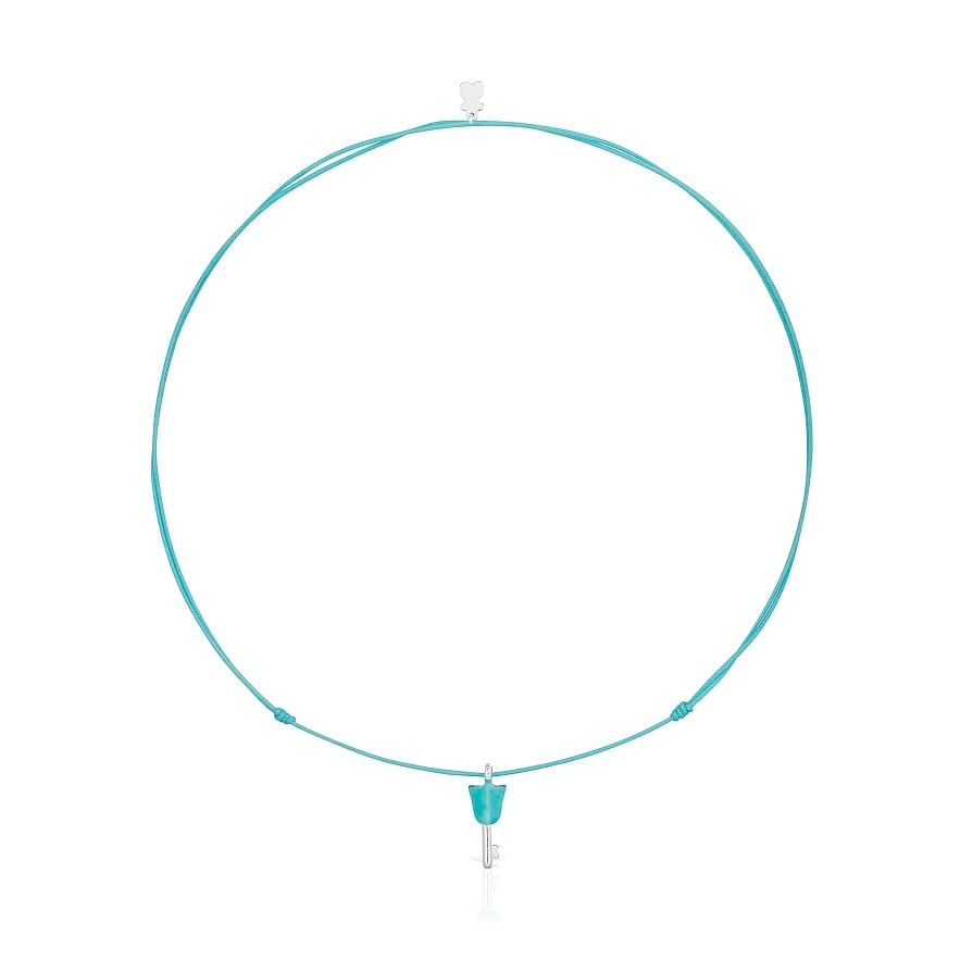 Нейлонове намисто TOUS Unlock бірюзового кольору з гранованим тюльпаном з амазоніту та сріблом 925 проби. Розмір підвіски: 20 мм. Довжина намиста: 70 см. Застібка-слайдер.