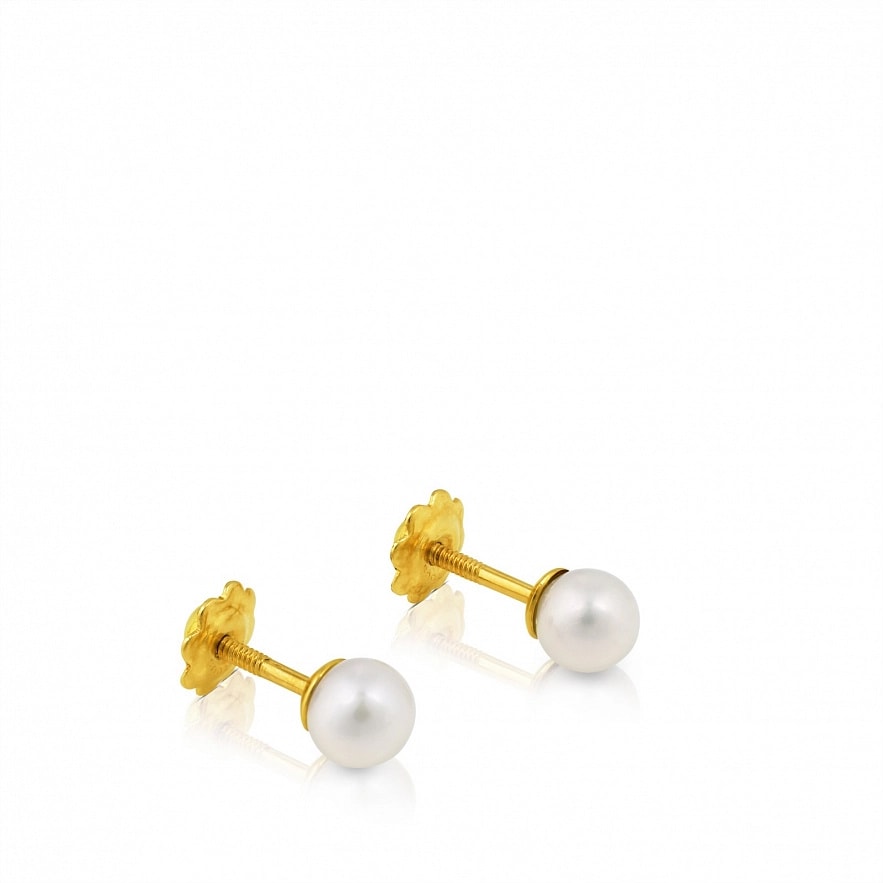Сережки TOUS Baby з жовтого золота 18 карат з перлинами. Розмір: 0,4 см.