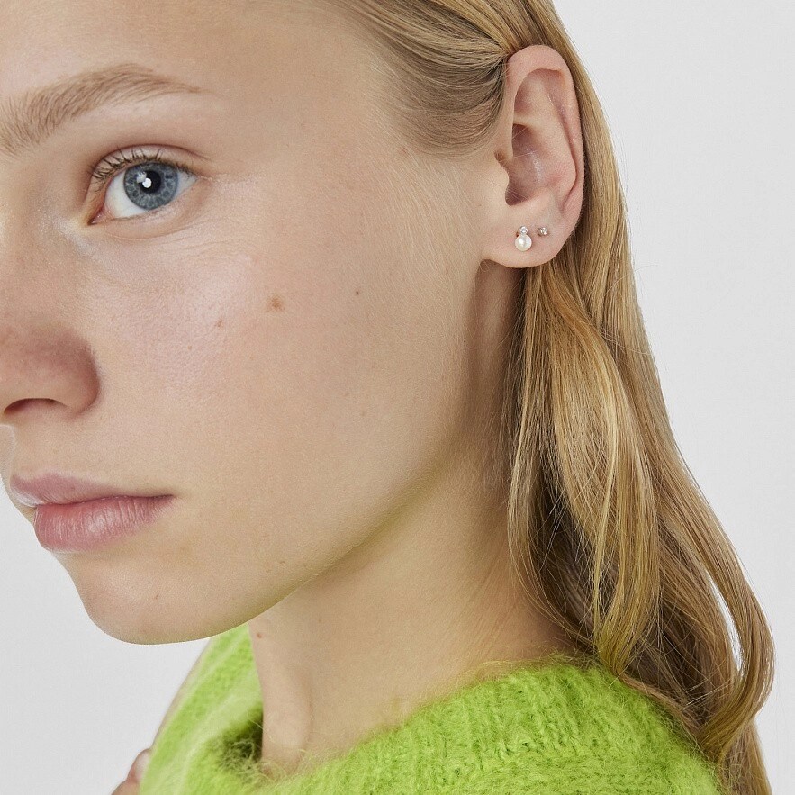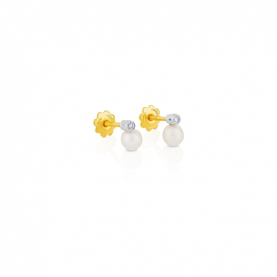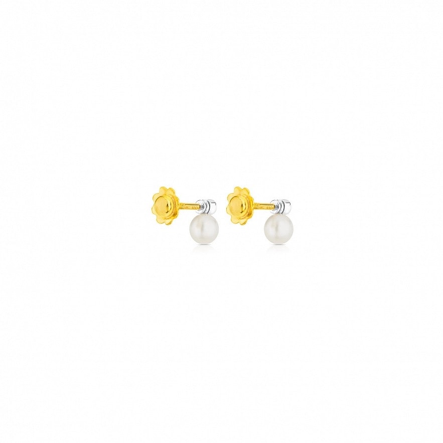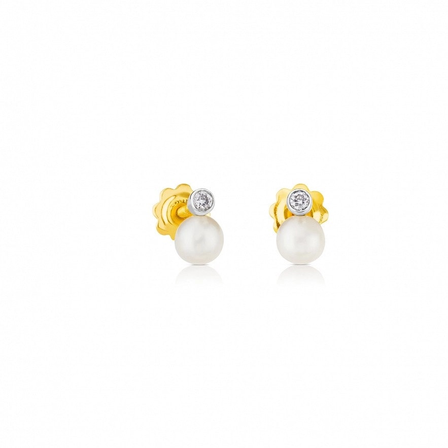 Сережки TOUS Basics з білого золота 18 карат з діамантами 0,03 карата та перлами 4 мм. Якість діаманта: H/SI.