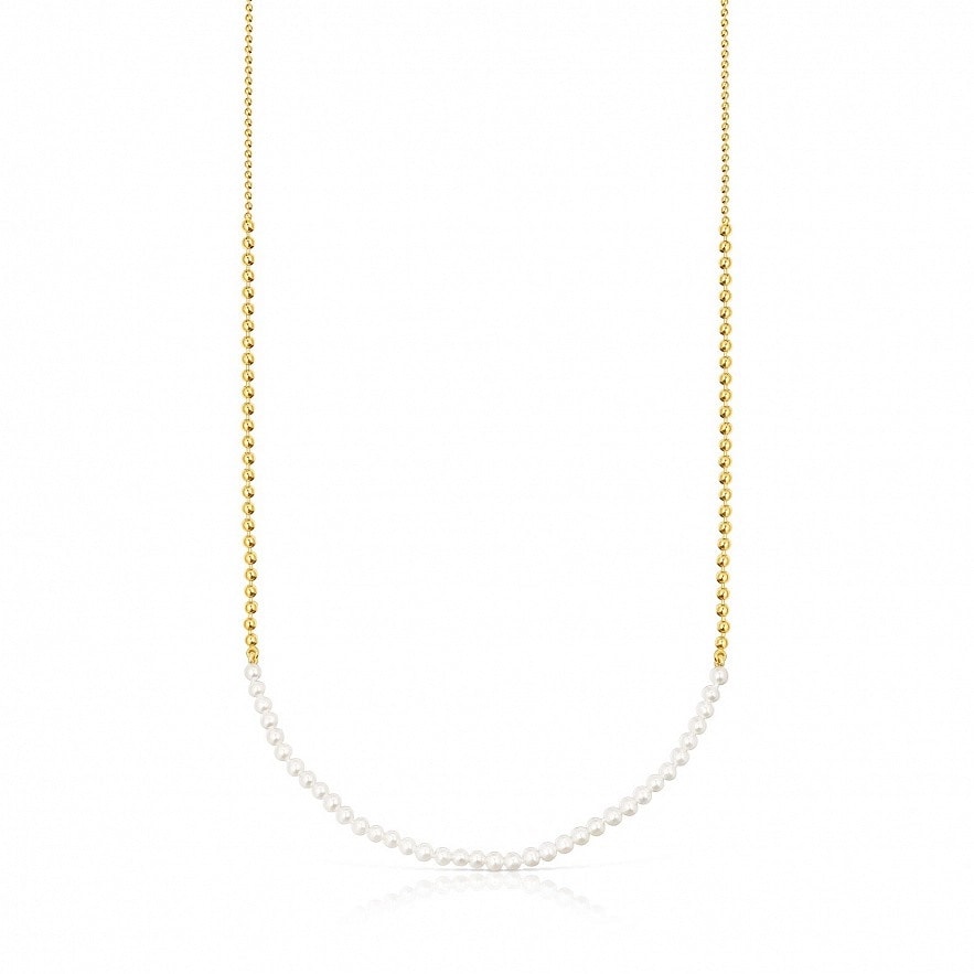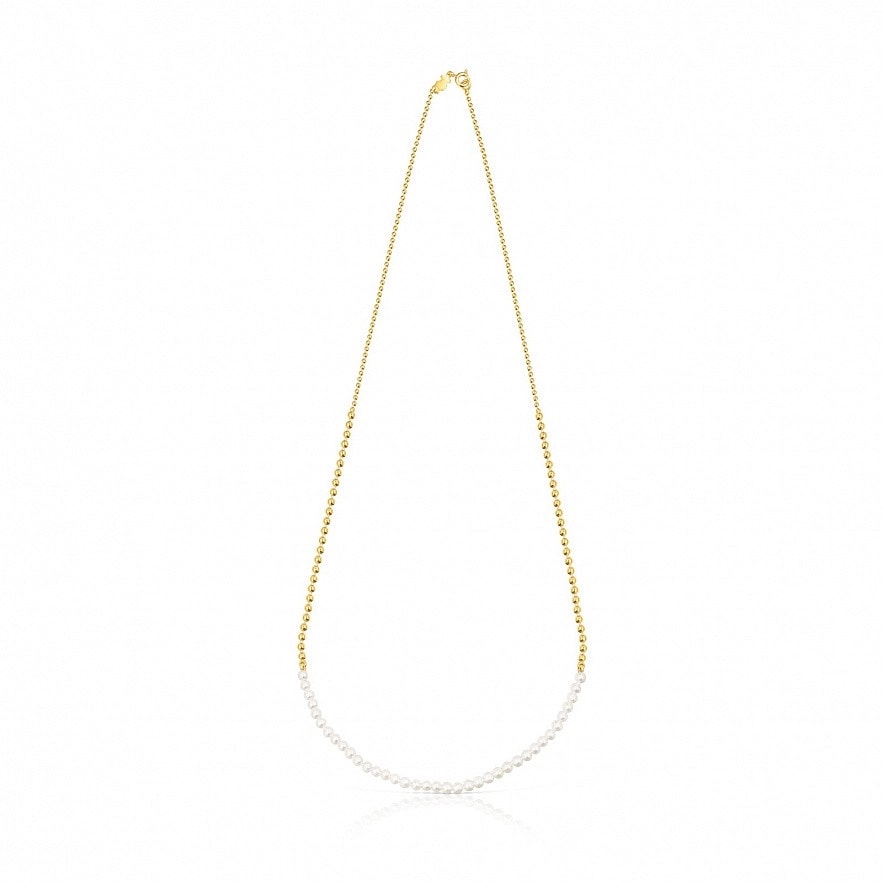 Намисто TOUS Gloss зі срібла 925 проби з покриттям Vermeil з ланцюгом кульками; 13 см ланцюга - кульки діаметром 1,8 мм, 10 см ланцюга - кульки діаметром 3 мм та 16 см ланцюга - культивовані прісноводні перлини. Довжина намиста: 65 см. Vermeil : срібло з покриттям золота 18 карат.