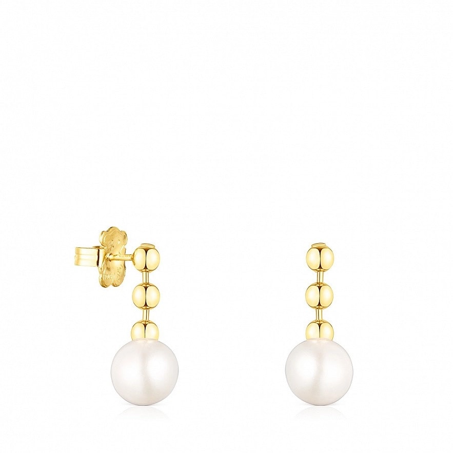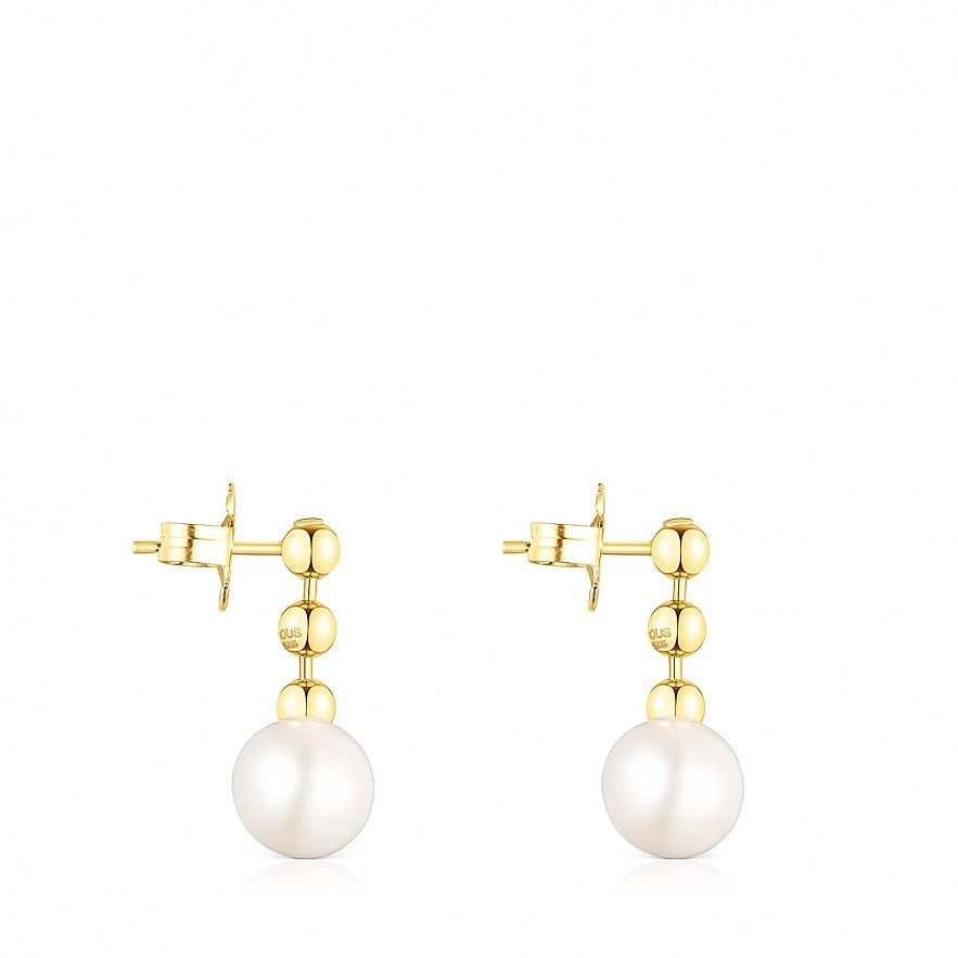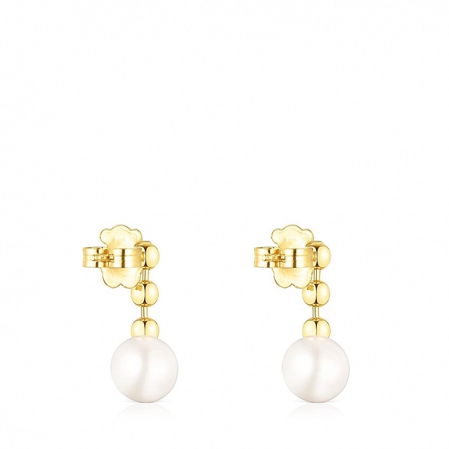 Сережки TOUS Gloss зі срібла 925 проби з покриттям Vermeil з трьома кульками розміром 4 мм та однією культивованою прісноводною перлиною розміром 10 мм. Застібка - пусет. Довжина сережок: 2,4 см. Vermeil : срібло з покриттям золота 18 карат.