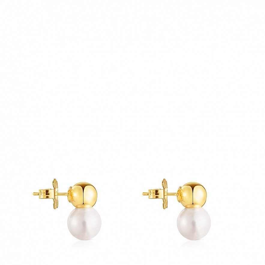 Сережки TOUS Gloss зі срібла 925 проби з покриттям Vermeil з кулькою розміром 8 мм та культивованою прісноводною перлиною розміром 10 мм. Застібка - пусет. Vermeil : срібло з покриттям золота 18 карат.