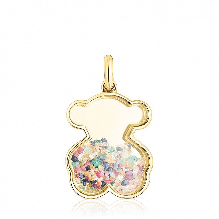 Підвіска Areia зі срібла 925 проби з покриттям Vermeil з фрагментами перидота, обробленого сапфіра, сердоліка, обробленого смарагду, цитрину і обробленого рубіна всередині. Розмір ведмедика: 22 мм. Цей товар не включає ланцюжок. Vermeil : срібло з покриттям золота 18 карат.