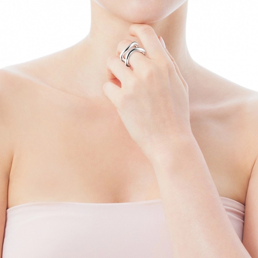 Подвійна відкрита каблучка TOUS Hav зі срібла 925 проби. Ширина: 16 мм. Товщина: 4 мм.