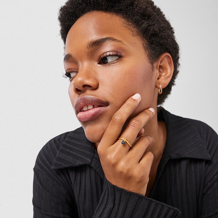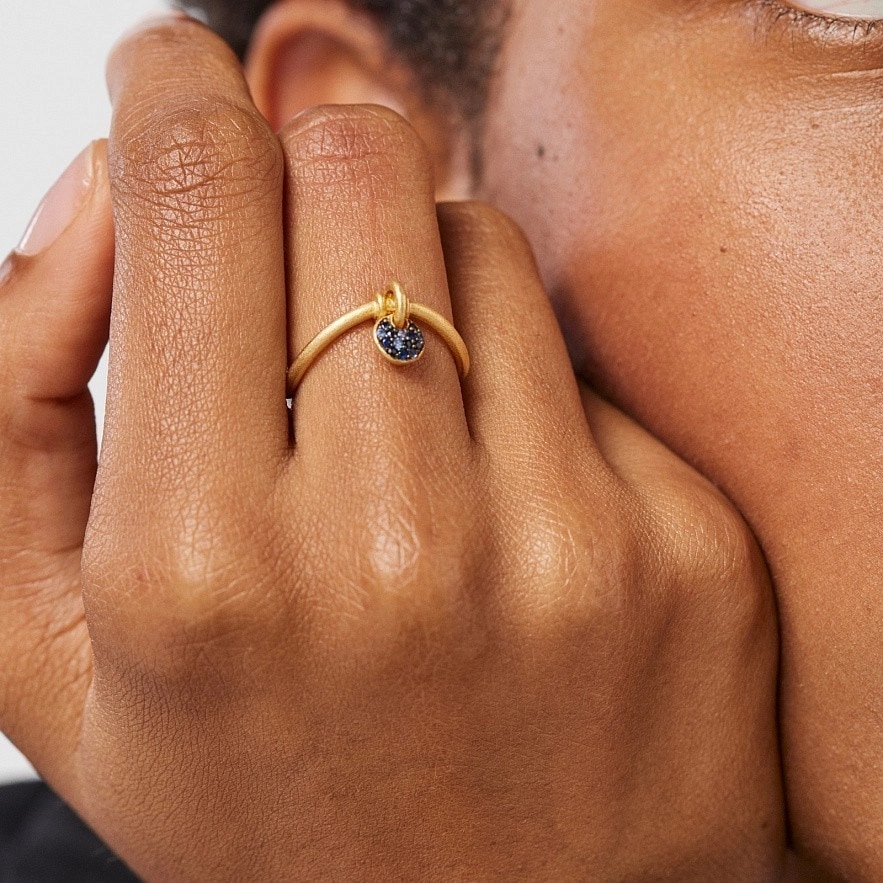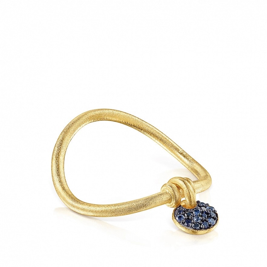Каблучка TOUS Luah у формі повниого місяця зі срібла 925 проби з покриттям Vermeil з окантовкою та з блакитними сапфірами з закріпкою паве, різних відтінків, на блакитному родієвому покритті. Розмір місяця: 5,5 мм. Vermeil : срібло з покриттям золота 18 карат.