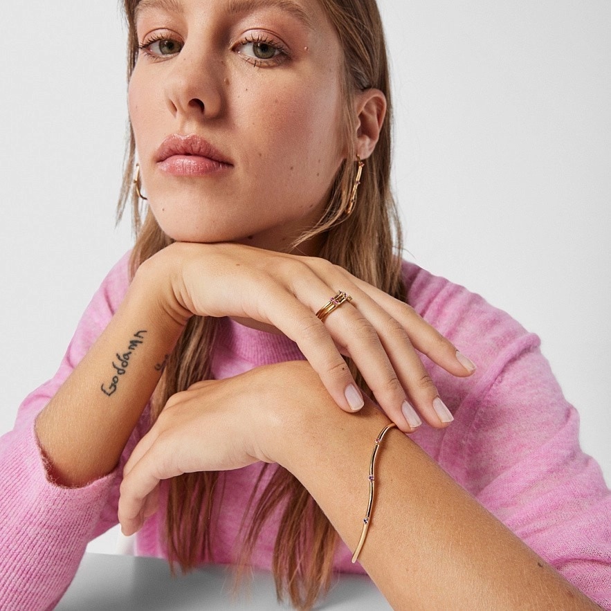 Браслет TOUS Magic Nature зі срібла 925 проби з покриттям Vermeil з аметистом 2 мм, іолітом та рубіном. Товщина: 2 мм. Vermeil : срібло з покриттям золота 18 карат.