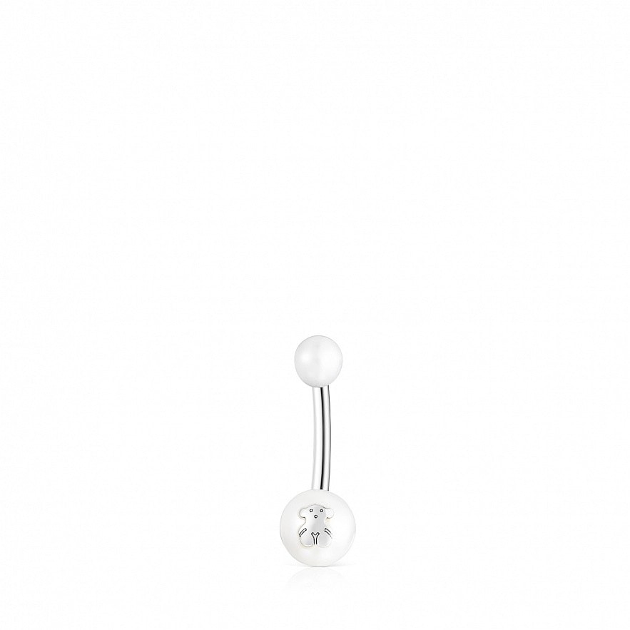 Пірсинг TOUS Pearl з хірургічної сталі з круглими культивованими прісноводними перлинами, верхня розміром 4мм і нижня 7мм, а також ведмедиком 4мм. Кульки на кінцях: 3 мм. Застібка-гвинтик. Пірсинг з біосумісного та гіпоалергенного металу, нестерилізованого. Щоб виріб був придатним для першого проколу, його необхідно стерилізувати в спеціалізованій установі. Рекомендується для пірсингу пупка.